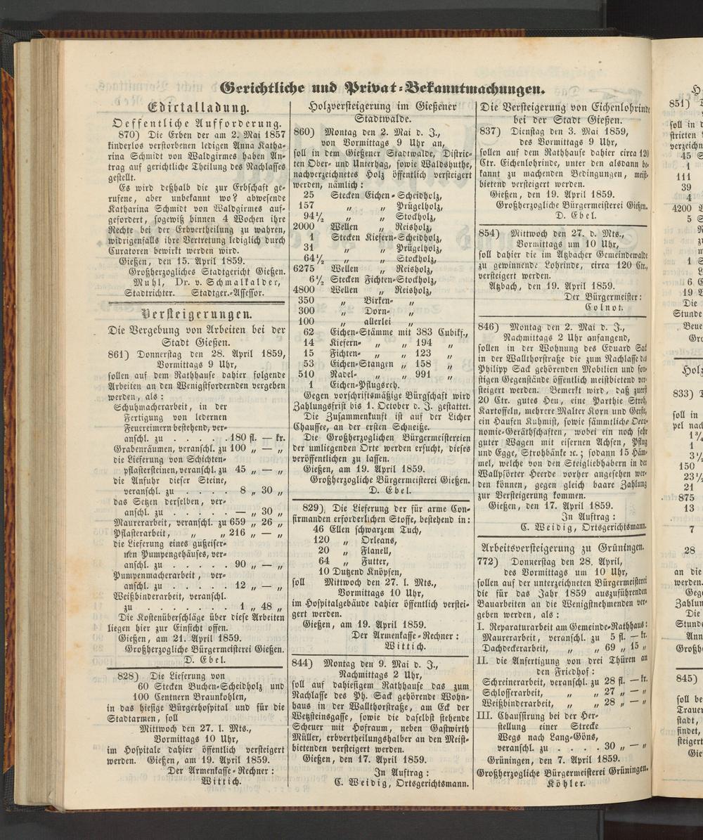 Anzeigeblatt für die Provinzialhauptstadt Gießen. 1840-1867