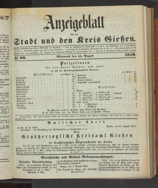 Anzeigeblatt für die Provinzialhauptstadt Gießen. 1840-1867
