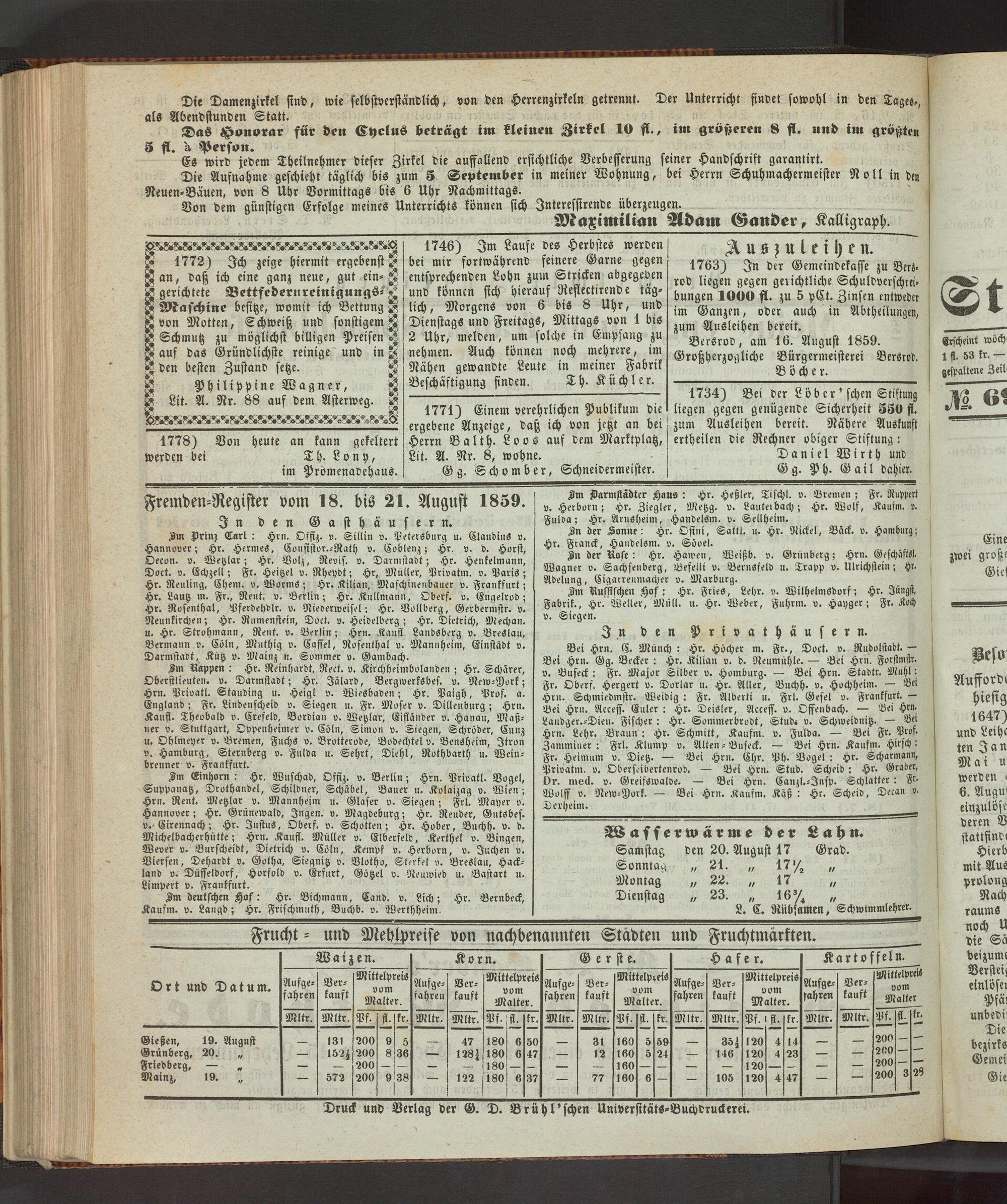 Anzeigeblatt für die Provinzialhauptstadt Gießen. 1840-1867