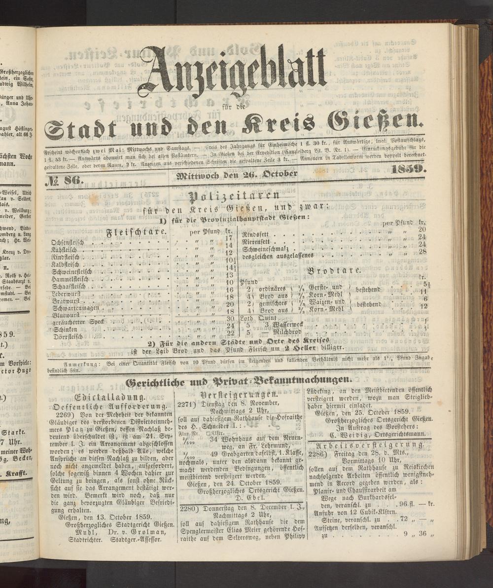 Anzeigeblatt für die Provinzialhauptstadt Gießen. 1840-1867