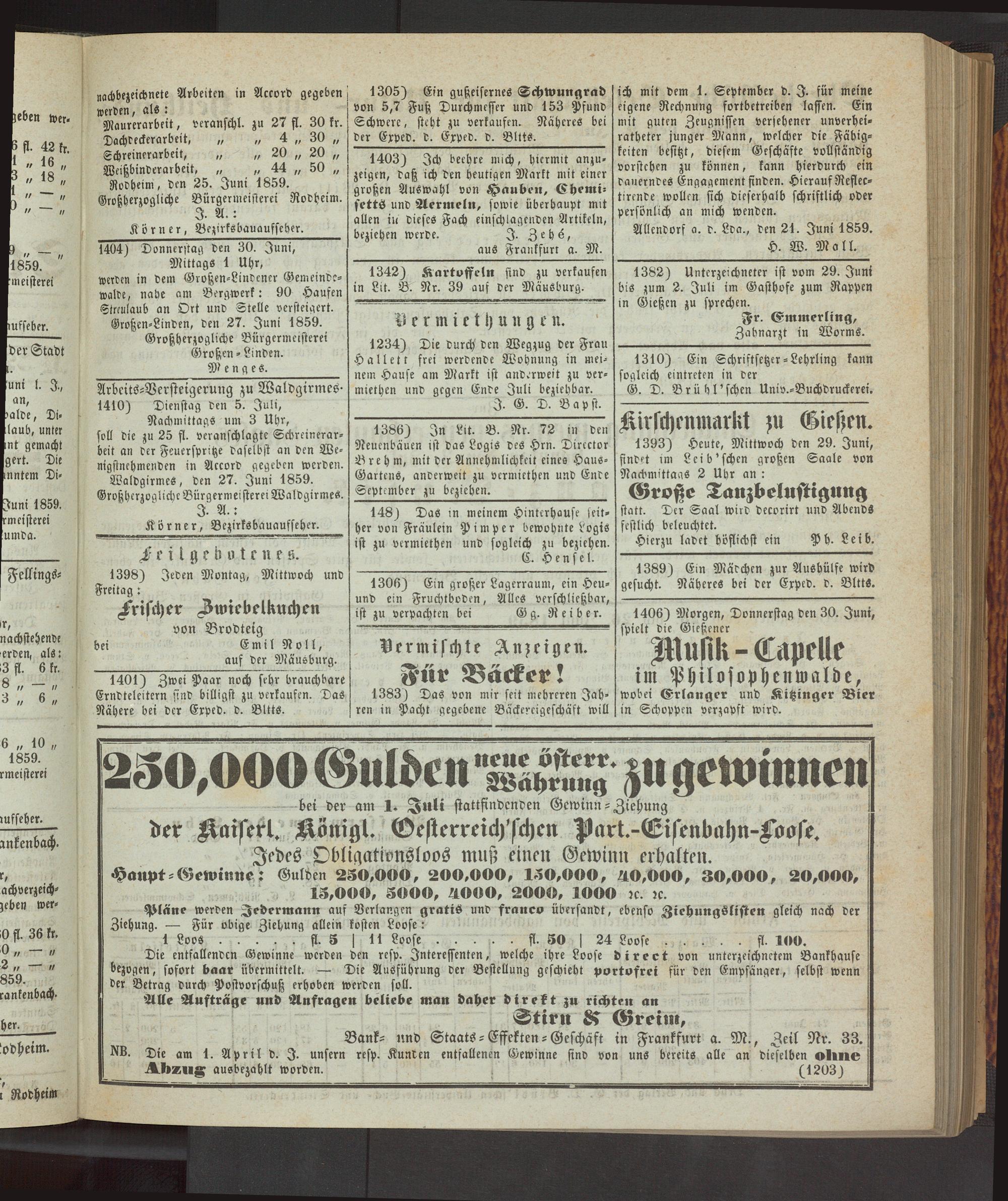 Anzeigeblatt für die Provinzialhauptstadt Gießen. 1840-1867
