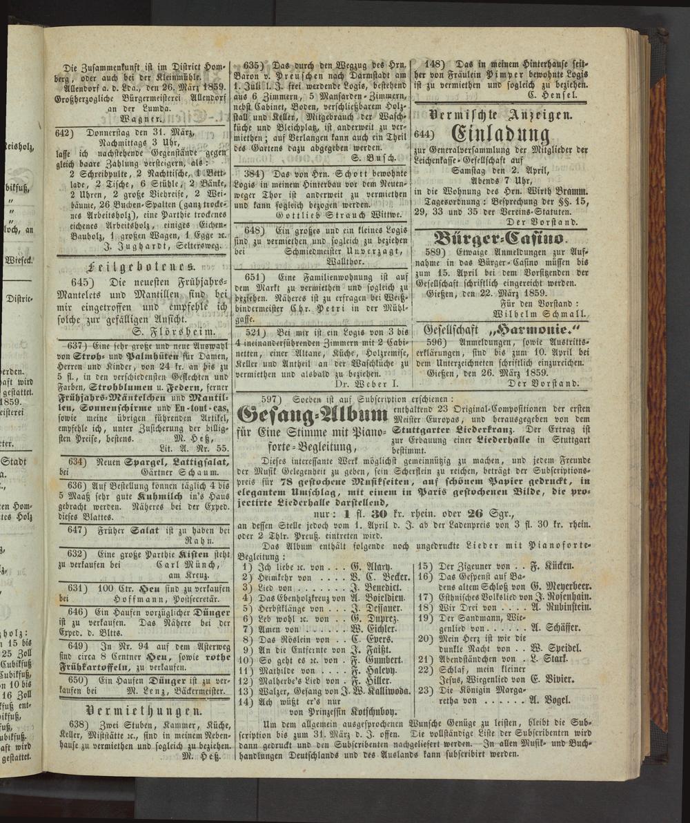 Anzeigeblatt für die Provinzialhauptstadt Gießen. 1840-1867