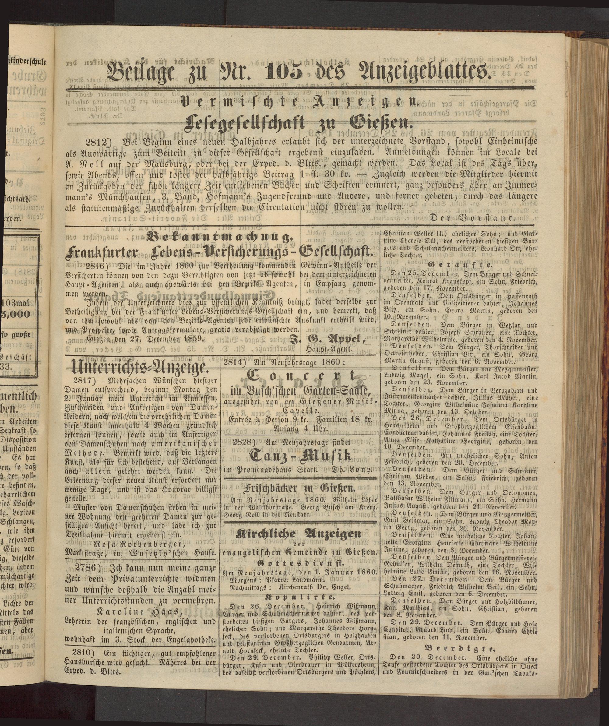 Anzeigeblatt für die Provinzialhauptstadt Gießen. 1840-1867