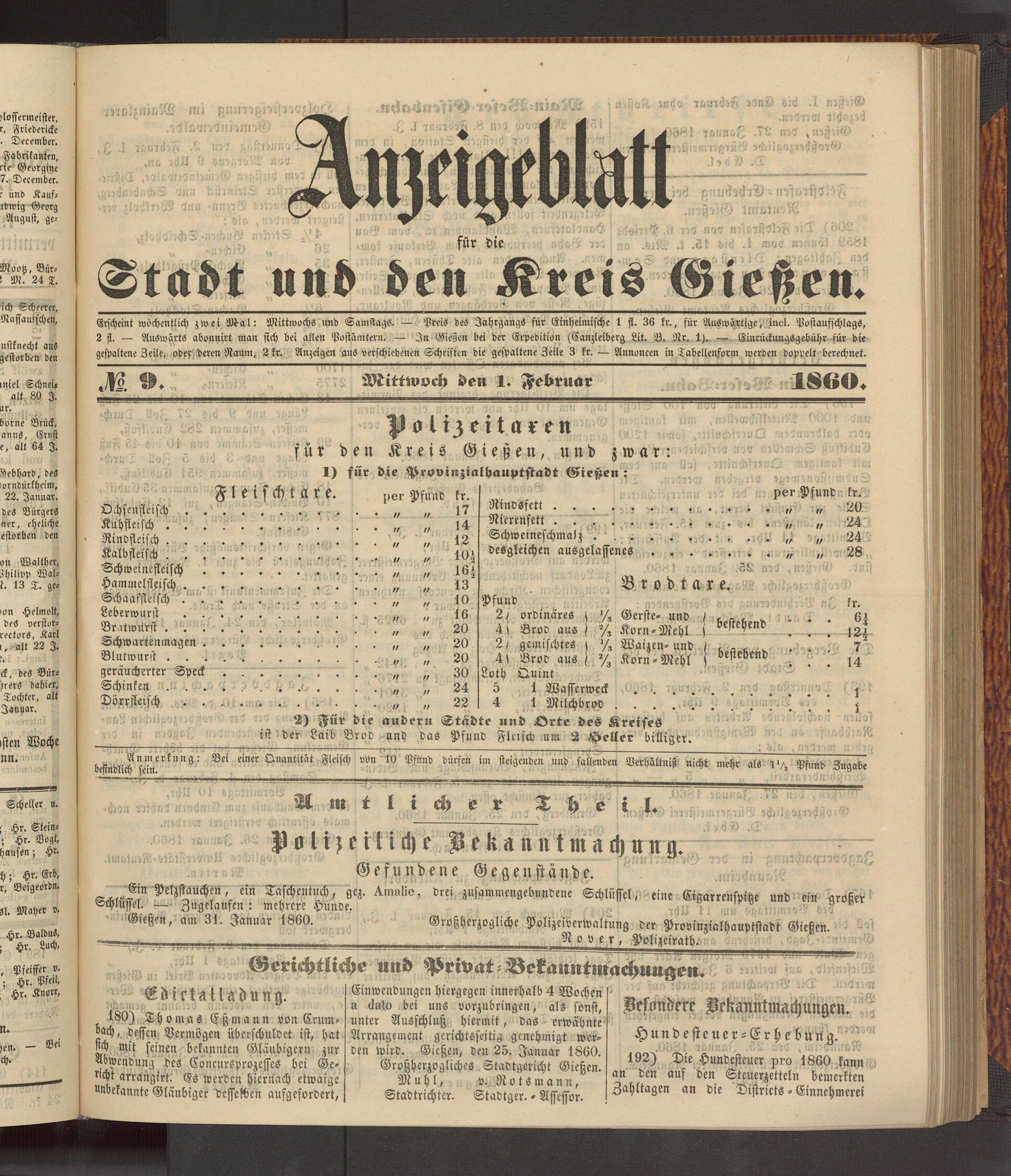Anzeigeblatt für die Provinzialhauptstadt Gießen. 1840-1867