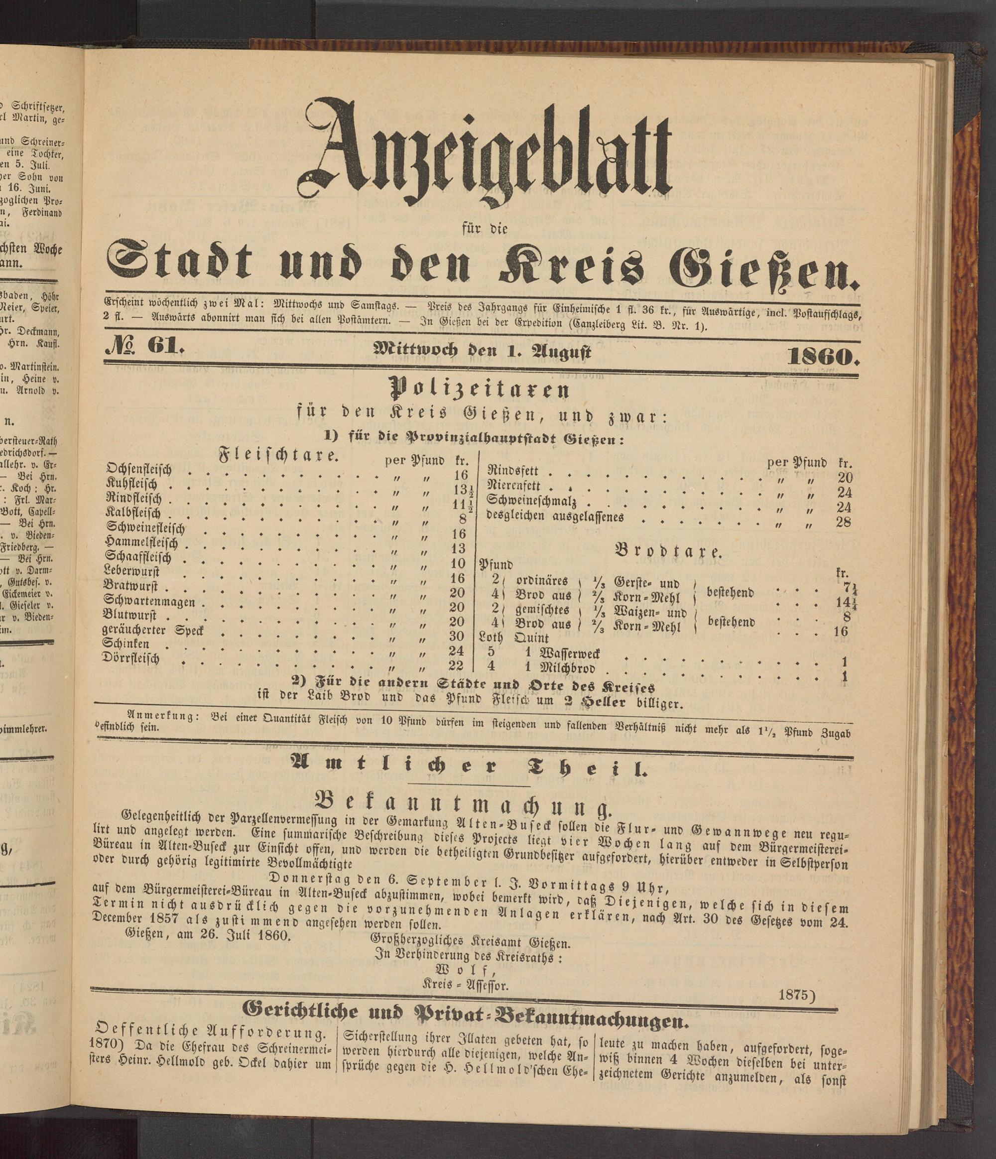Anzeigeblatt für die Provinzialhauptstadt Gießen. 1840-1867