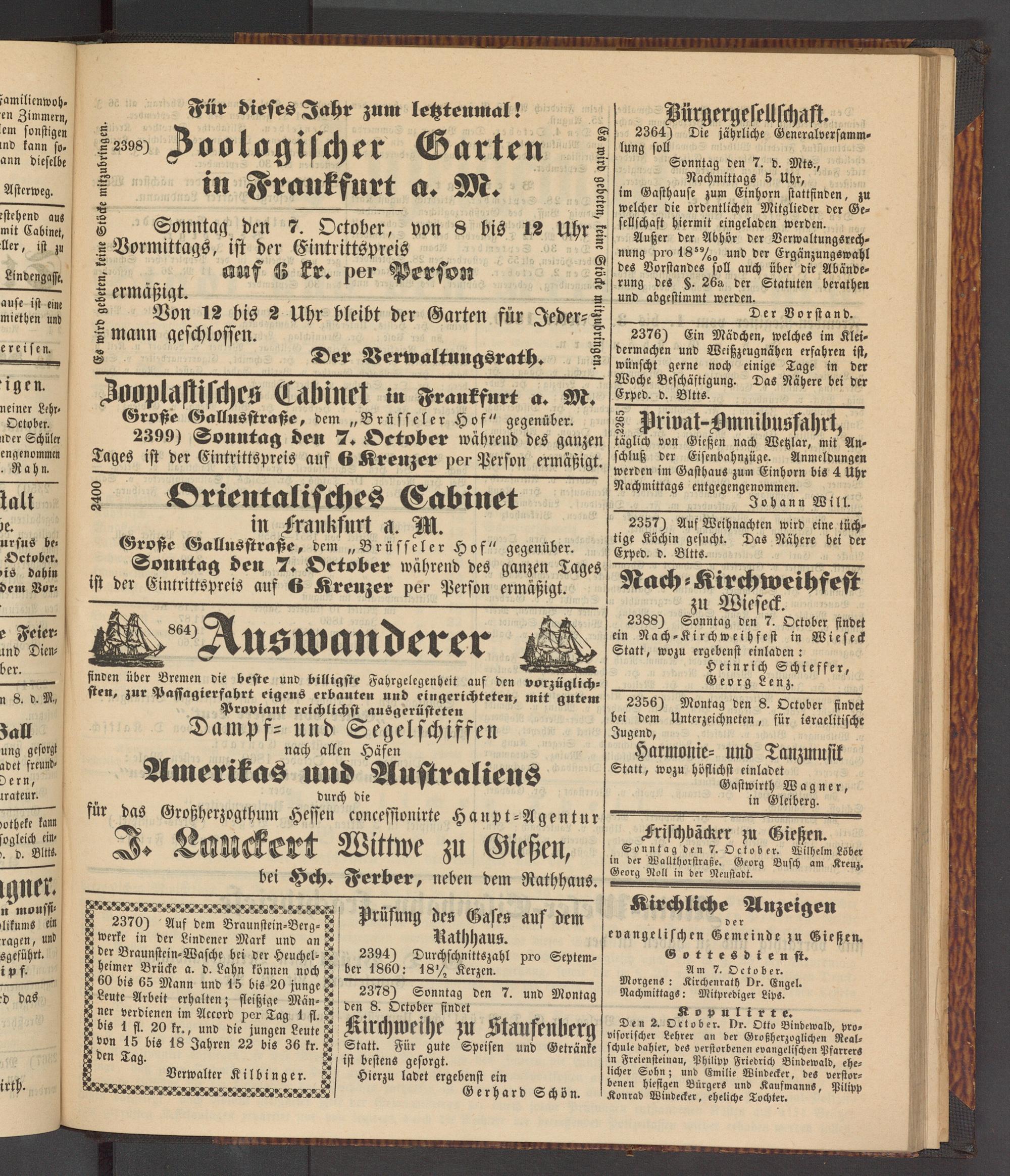 Anzeigeblatt für die Provinzialhauptstadt Gießen. 1840-1867