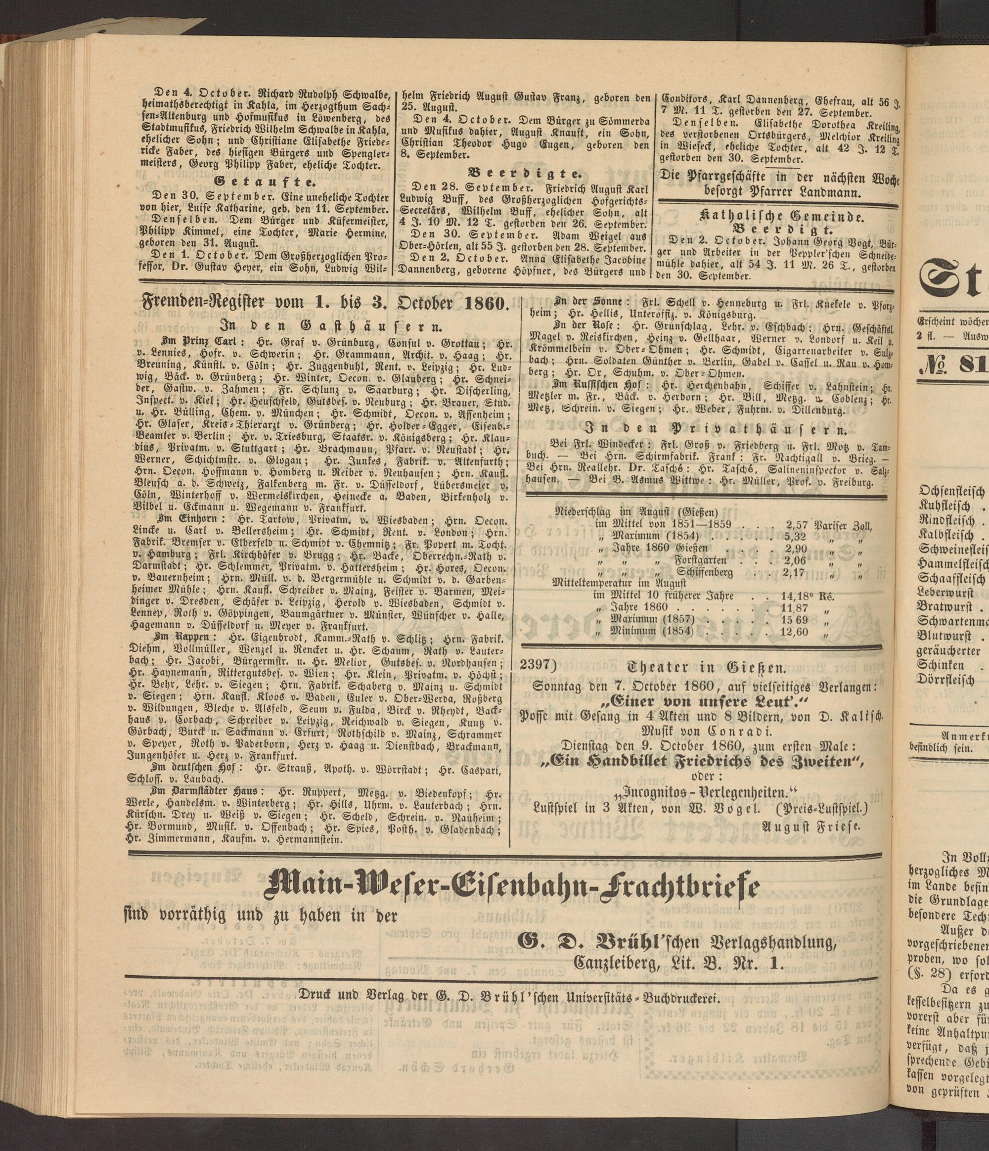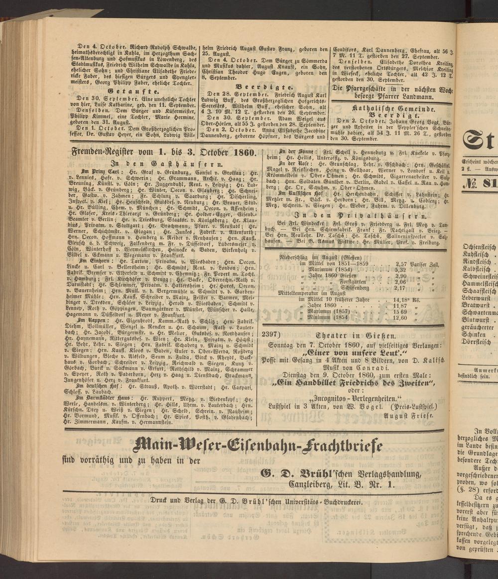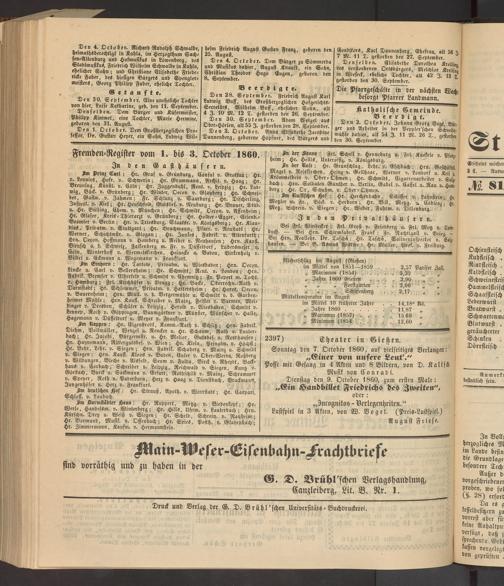 Anzeigeblatt für die Provinzialhauptstadt Gießen. 1840-1867