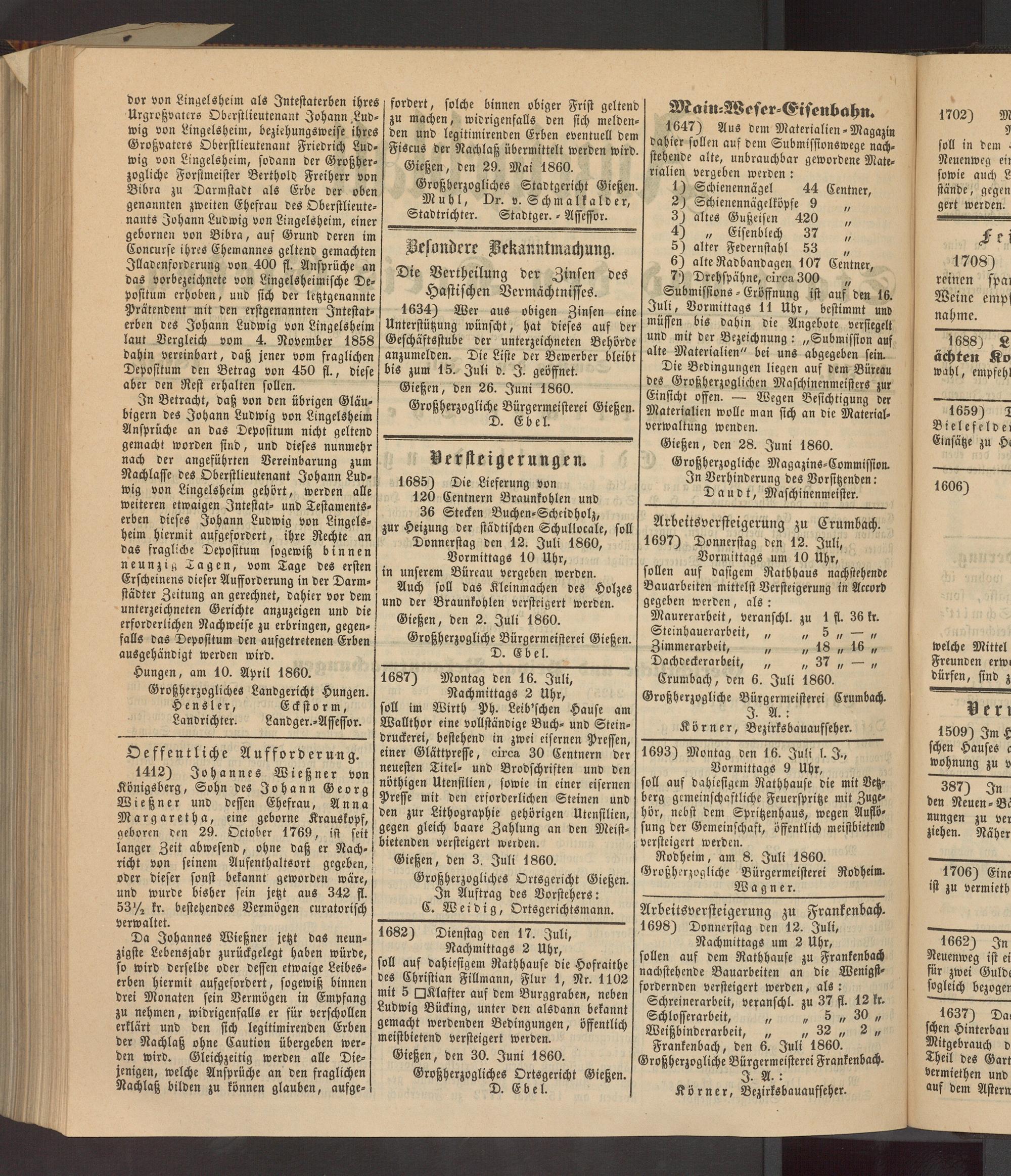 Anzeigeblatt für die Provinzialhauptstadt Gießen. 1840-1867