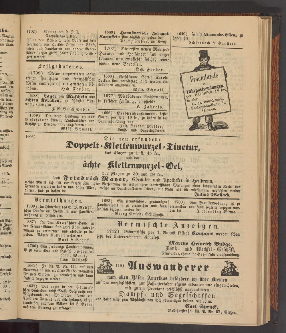 Anzeigeblatt für die Provinzialhauptstadt Gießen. 1840-1867