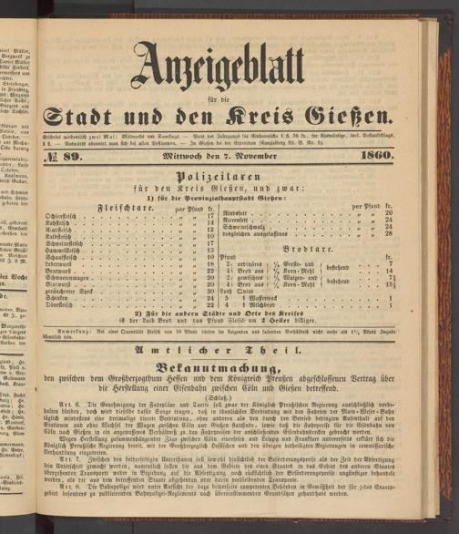 Anzeigeblatt für die Provinzialhauptstadt Gießen. 1840-1867