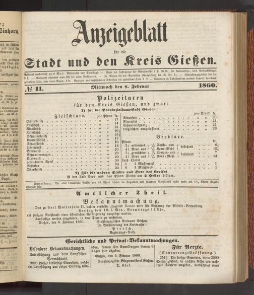 Anzeigeblatt für die Provinzialhauptstadt Gießen. 1840-1867
