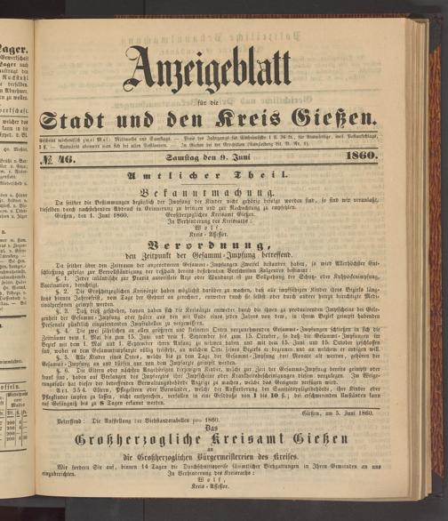 Anzeigeblatt für die Provinzialhauptstadt Gießen. 1840-1867