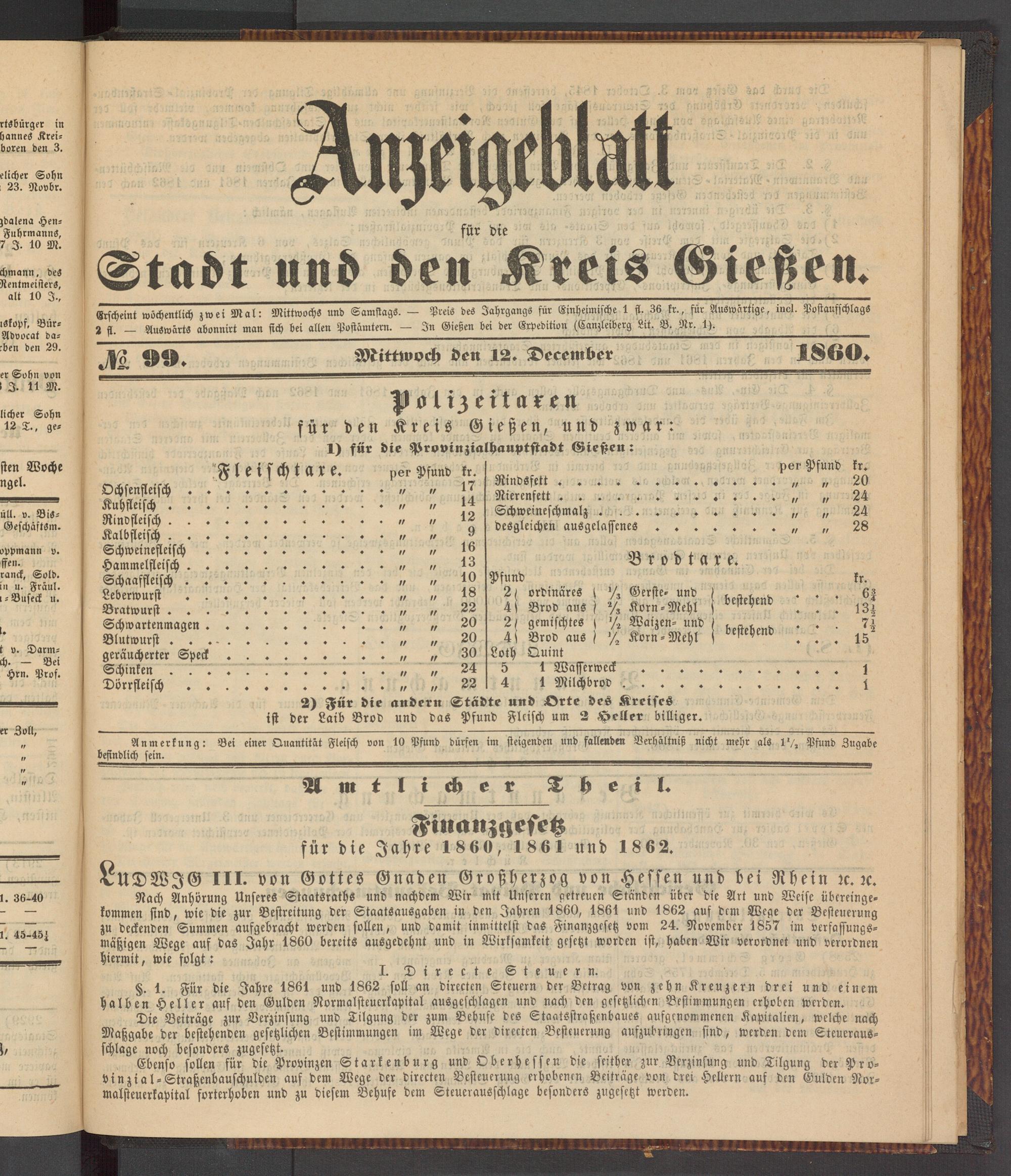 Anzeigeblatt für die Provinzialhauptstadt Gießen. 1840-1867