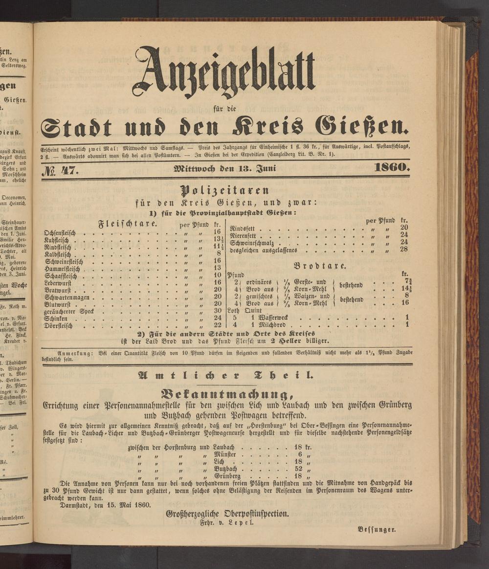 Anzeigeblatt für die Provinzialhauptstadt Gießen. 1840-1867
