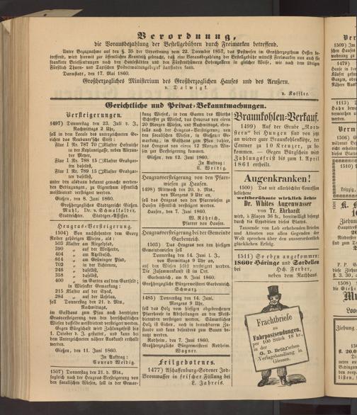 Anzeigeblatt für die Provinzialhauptstadt Gießen. 1840-1867
