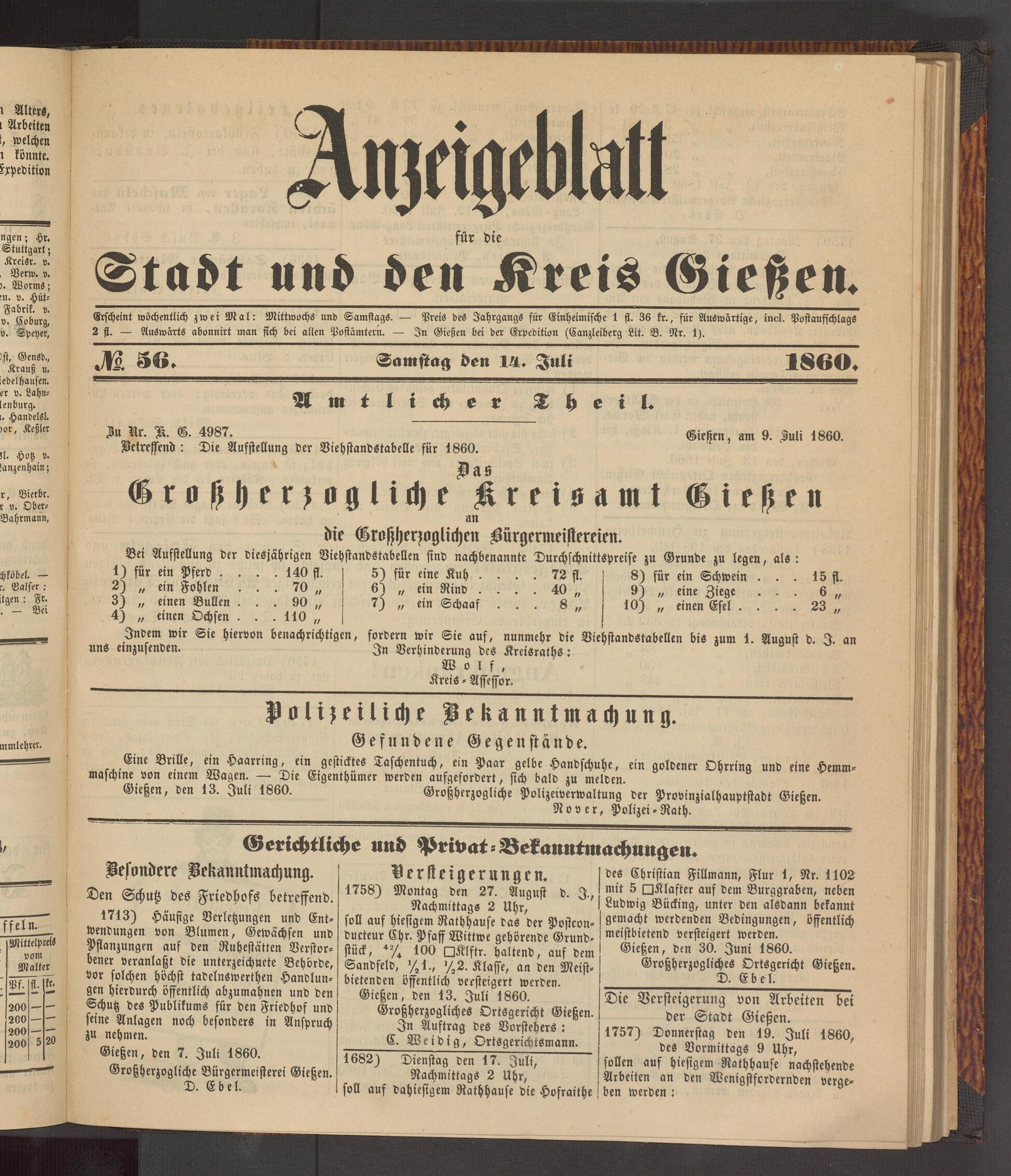 Anzeigeblatt für die Provinzialhauptstadt Gießen. 1840-1867