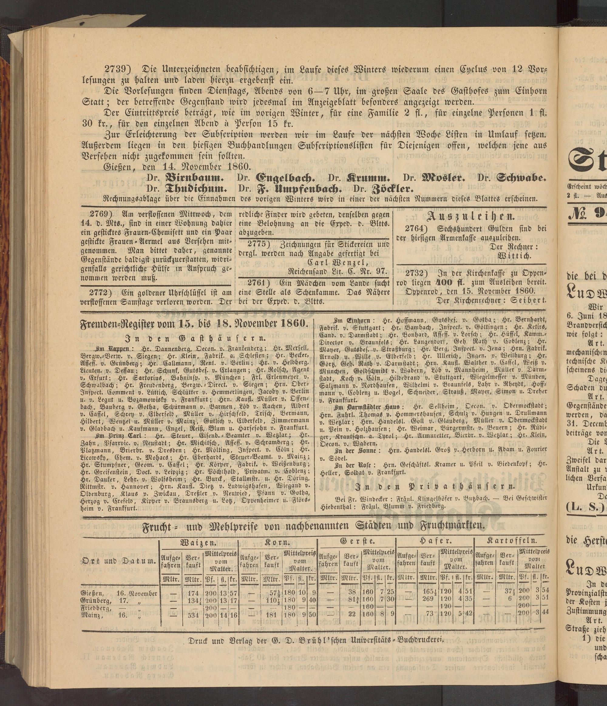 Anzeigeblatt für die Provinzialhauptstadt Gießen. 1840-1867