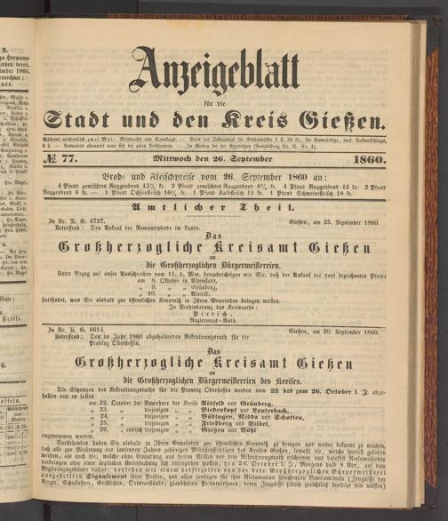 Anzeigeblatt für die Provinzialhauptstadt Gießen. 1840-1867