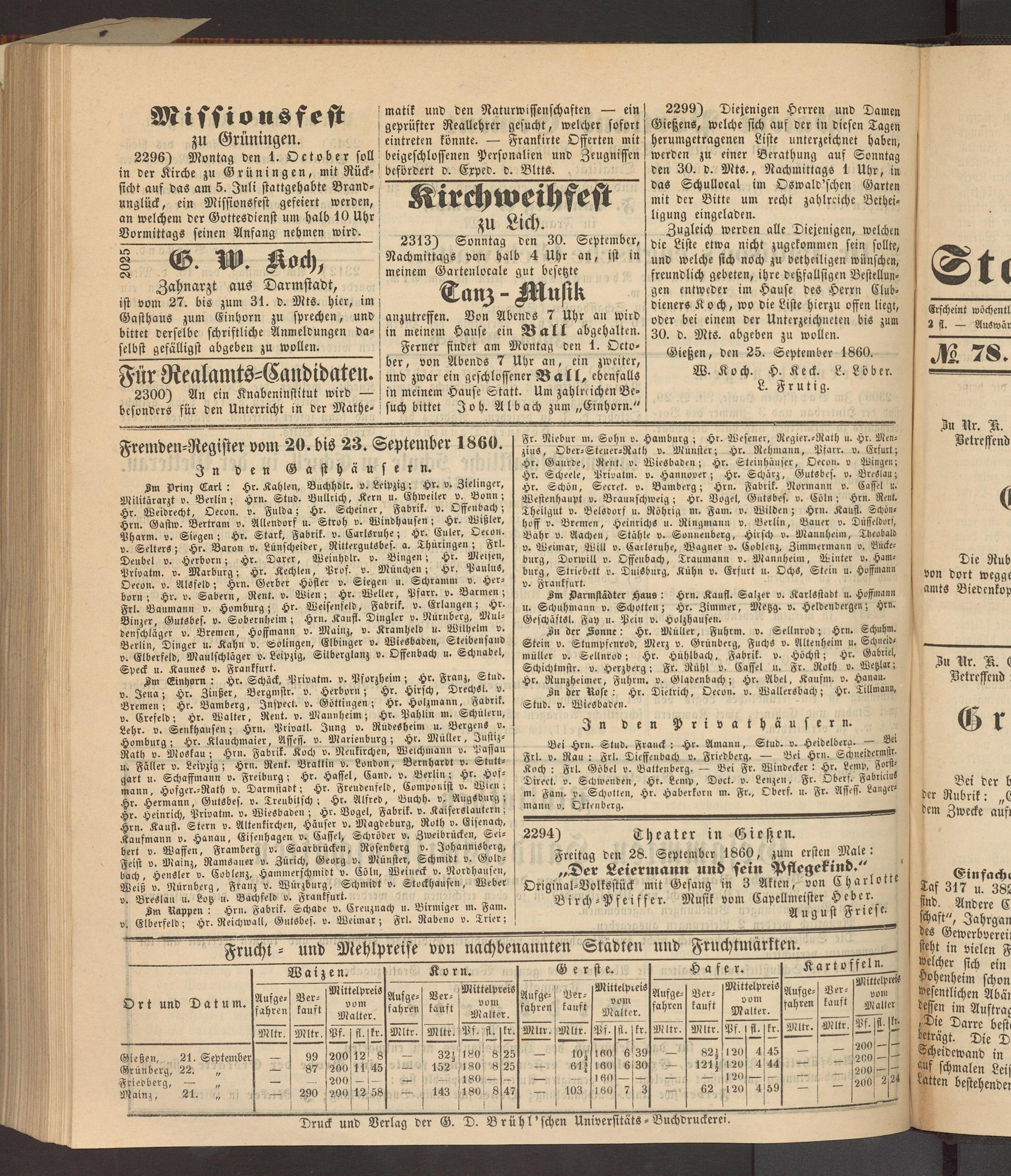 Anzeigeblatt für die Provinzialhauptstadt Gießen. 1840-1867