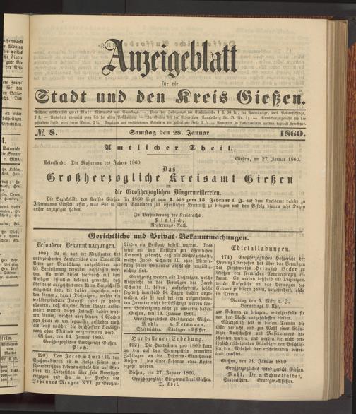 Anzeigeblatt für die Provinzialhauptstadt Gießen. 1840-1867