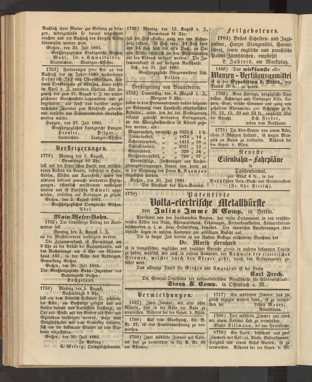 Anzeigeblatt für die Provinzialhauptstadt Gießen. 1840-1867