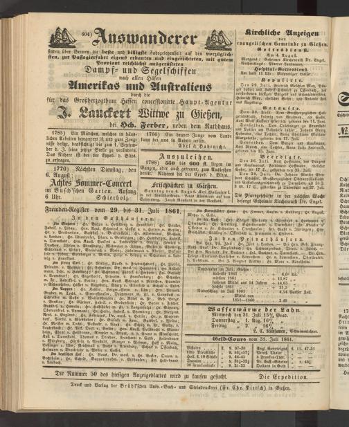 Anzeigeblatt für die Provinzialhauptstadt Gießen. 1840-1867