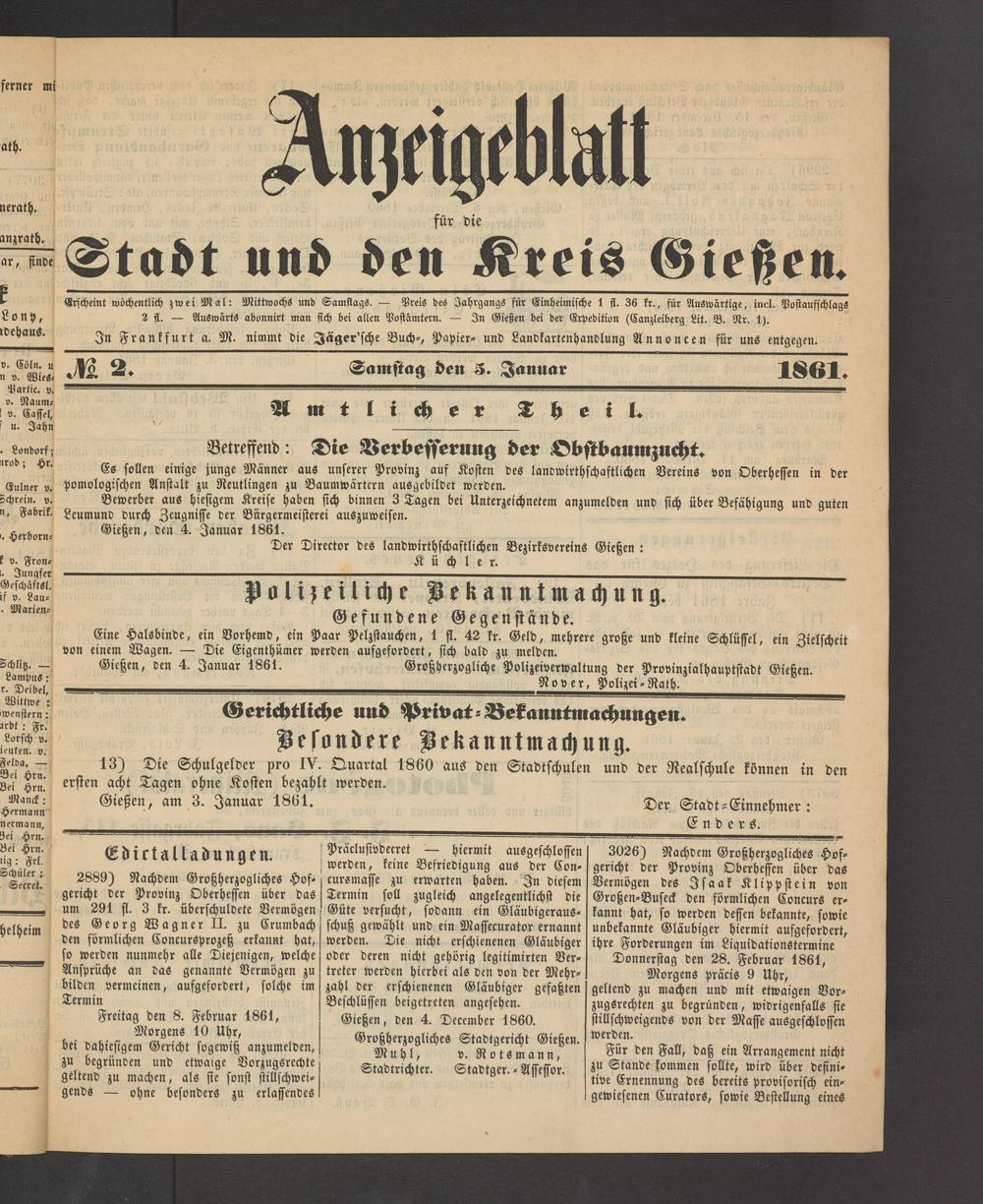 Anzeigeblatt für die Provinzialhauptstadt Gießen. 1840-1867