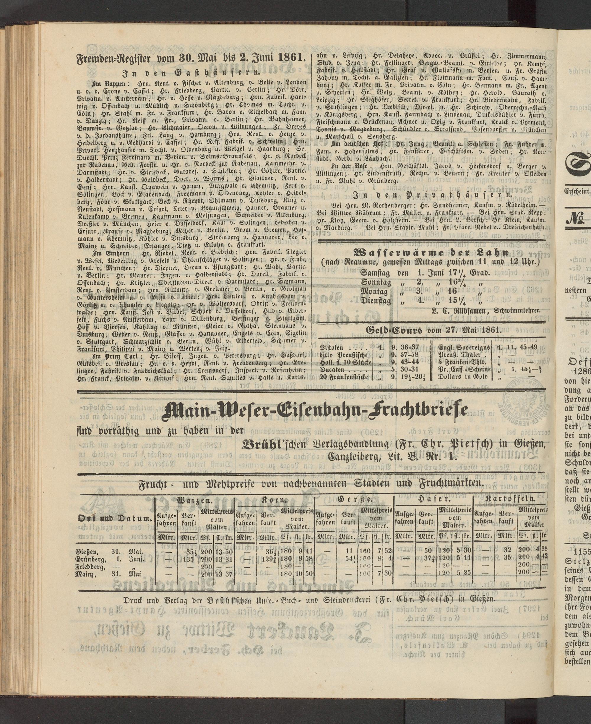 Anzeigeblatt für die Provinzialhauptstadt Gießen. 1840-1867