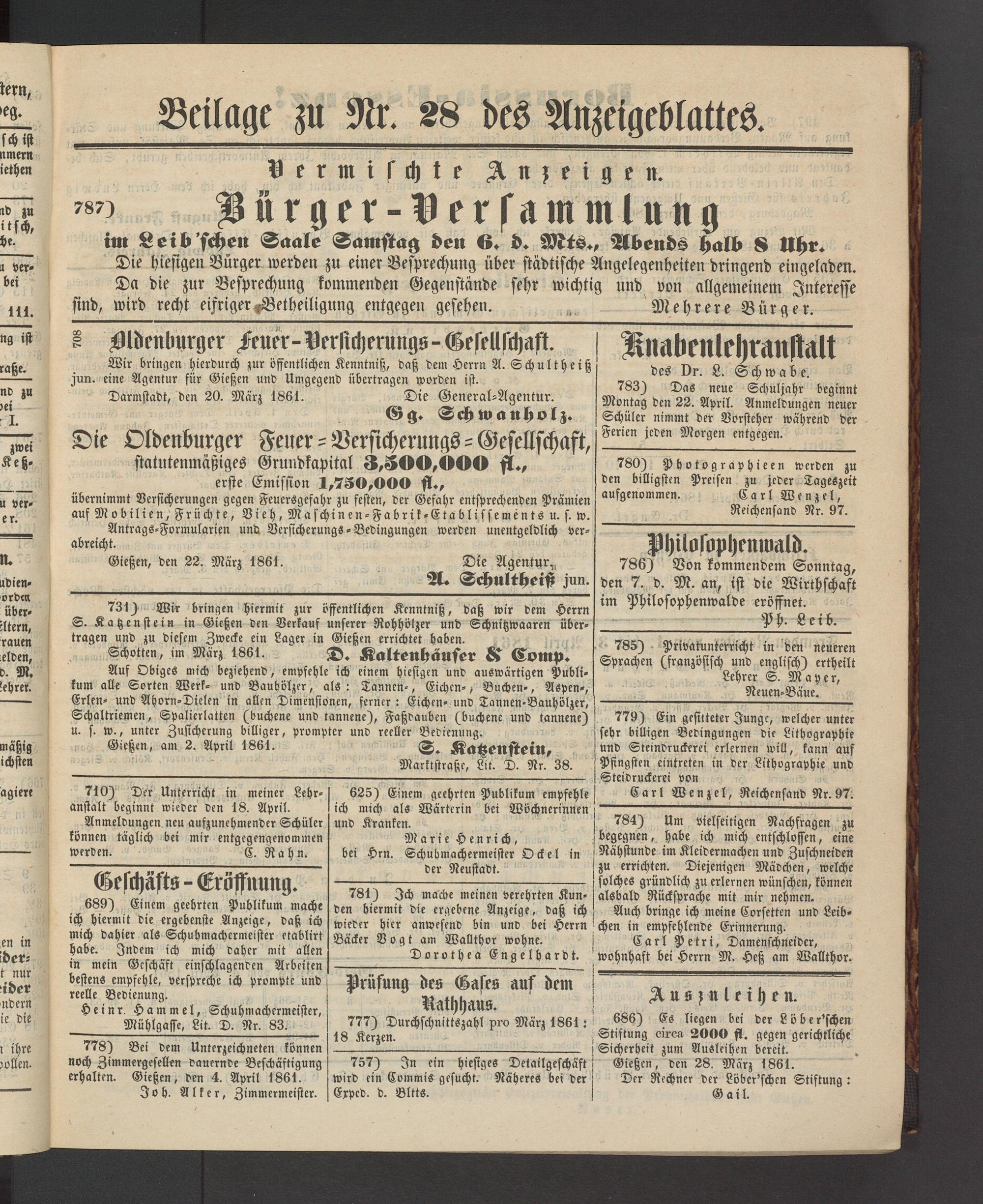 Anzeigeblatt für die Provinzialhauptstadt Gießen. 1840-1867