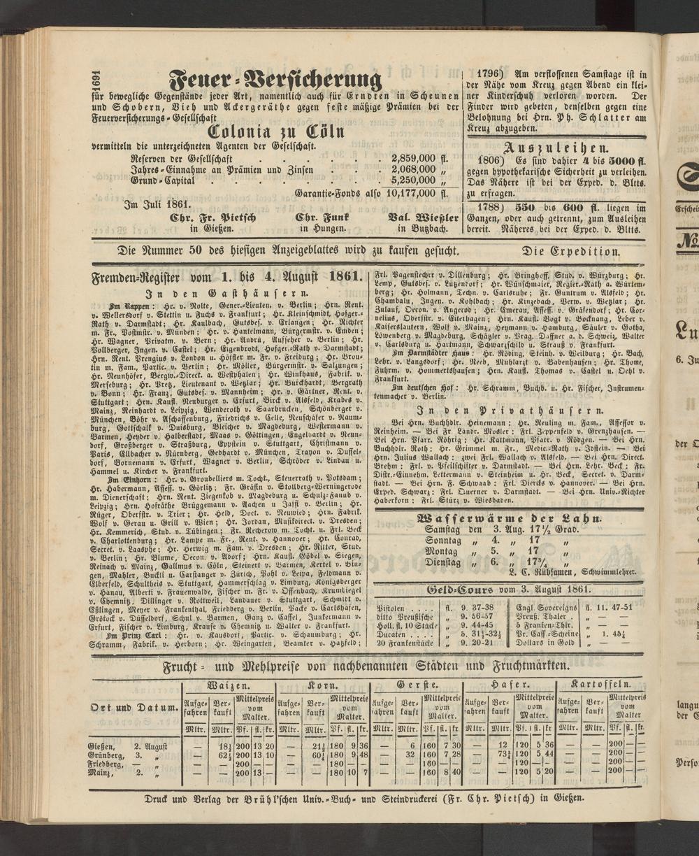Anzeigeblatt für die Provinzialhauptstadt Gießen. 1840-1867