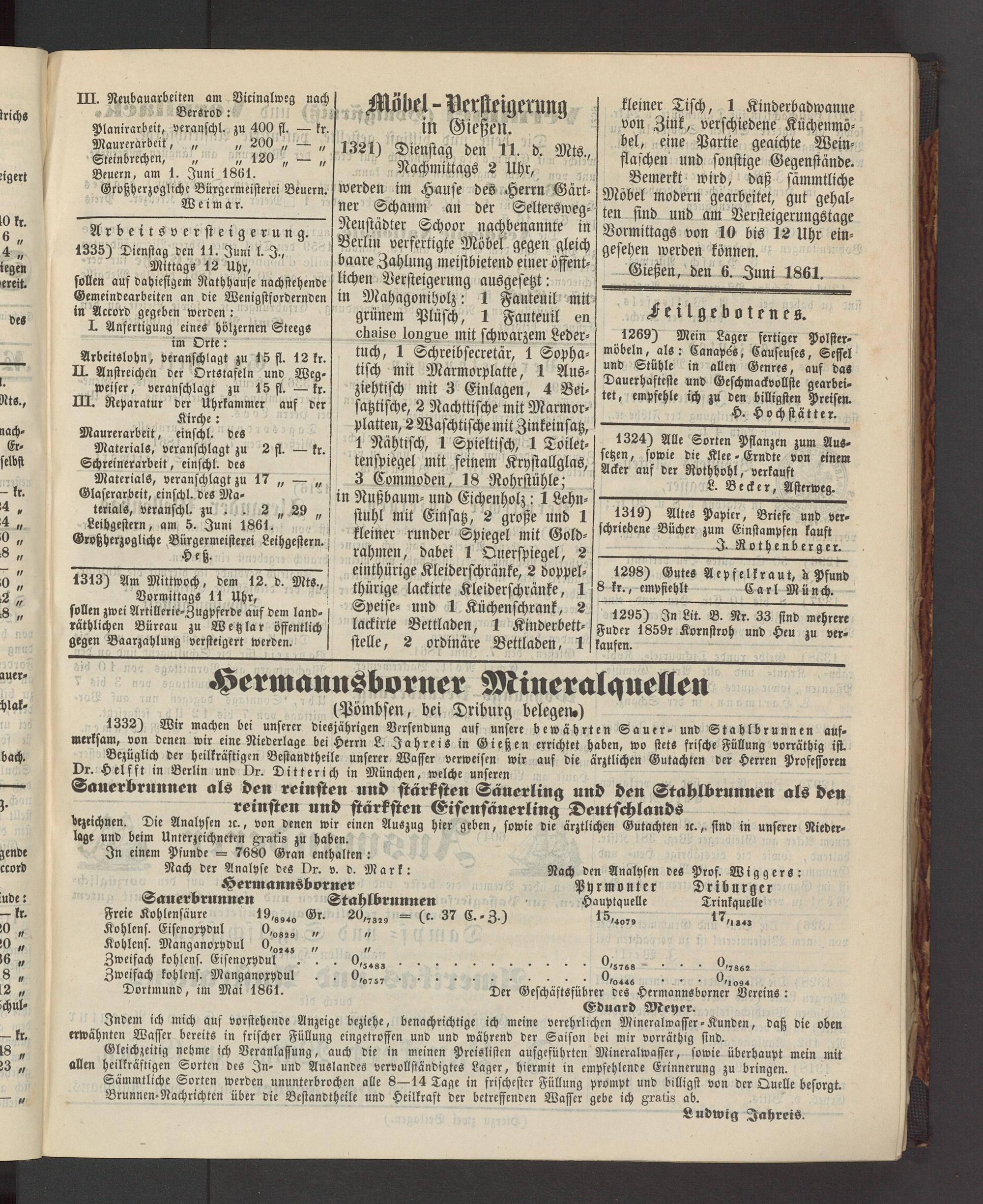 Anzeigeblatt für die Provinzialhauptstadt Gießen. 1840-1867