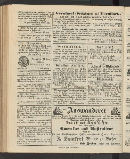Anzeigeblatt für die Provinzialhauptstadt Gießen. 1840-1867