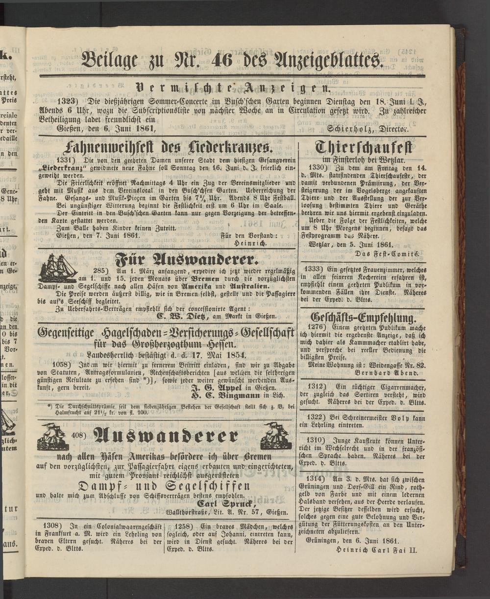 Anzeigeblatt für die Provinzialhauptstadt Gießen. 1840-1867