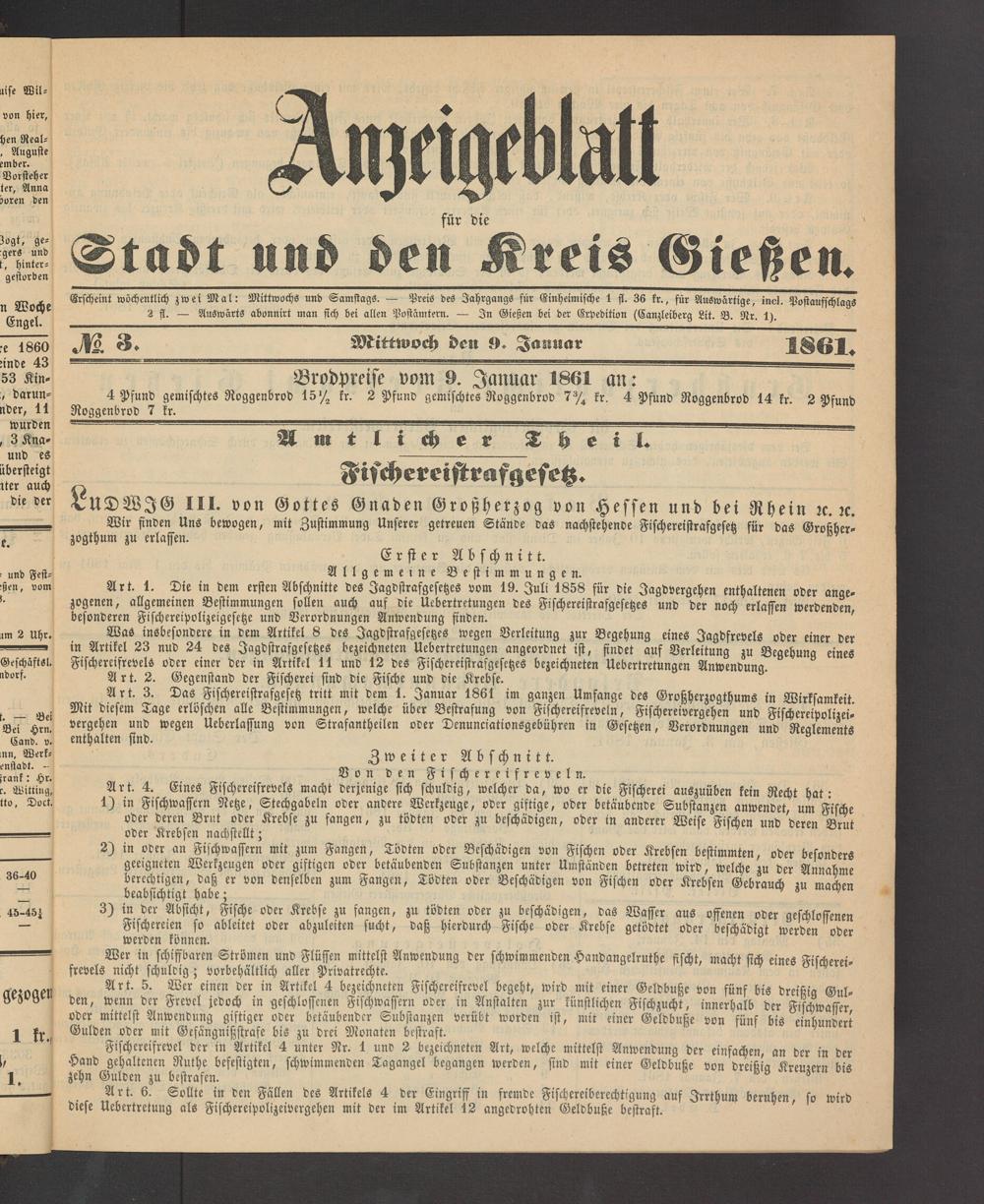 Anzeigeblatt für die Provinzialhauptstadt Gießen. 1840-1867