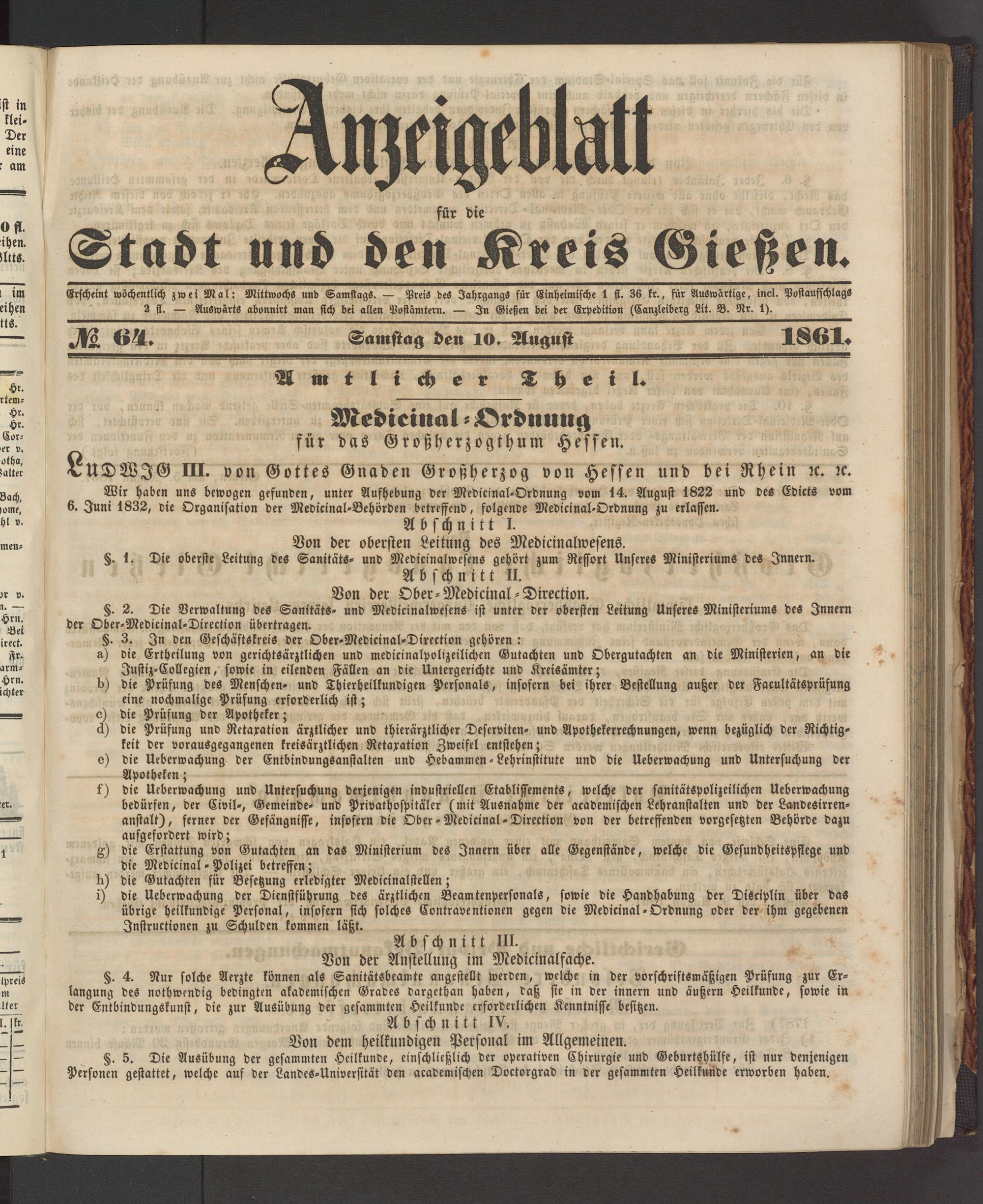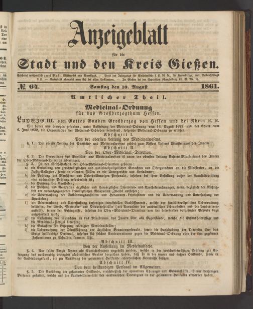 Anzeigeblatt für die Provinzialhauptstadt Gießen. 1840-1867