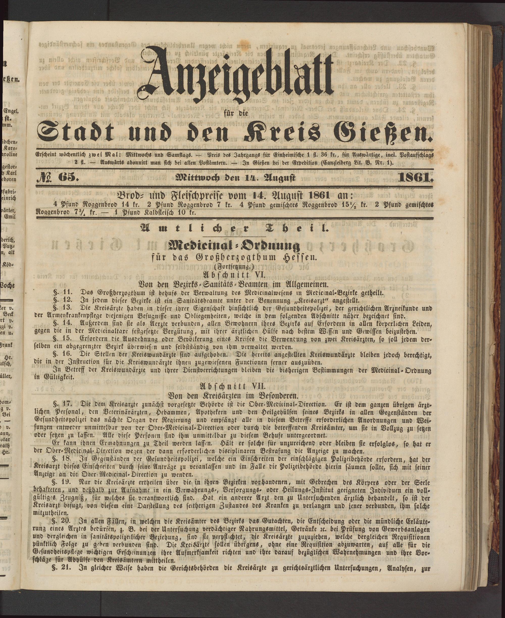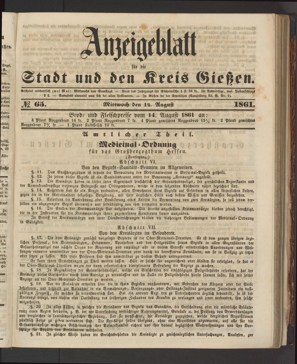 Anzeigeblatt für die Provinzialhauptstadt Gießen. 1840-1867