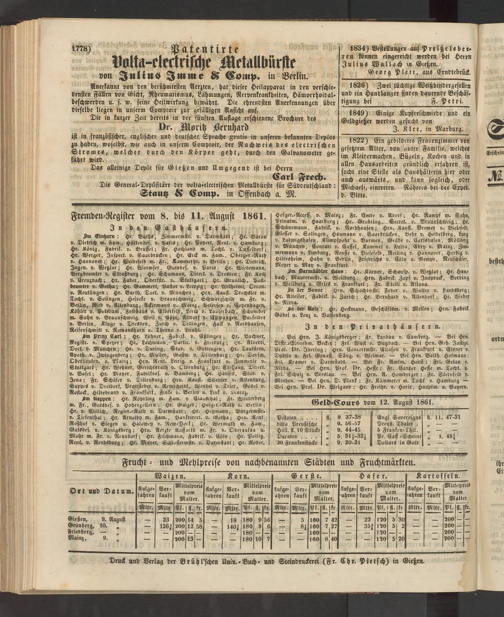 Anzeigeblatt für die Provinzialhauptstadt Gießen. 1840-1867