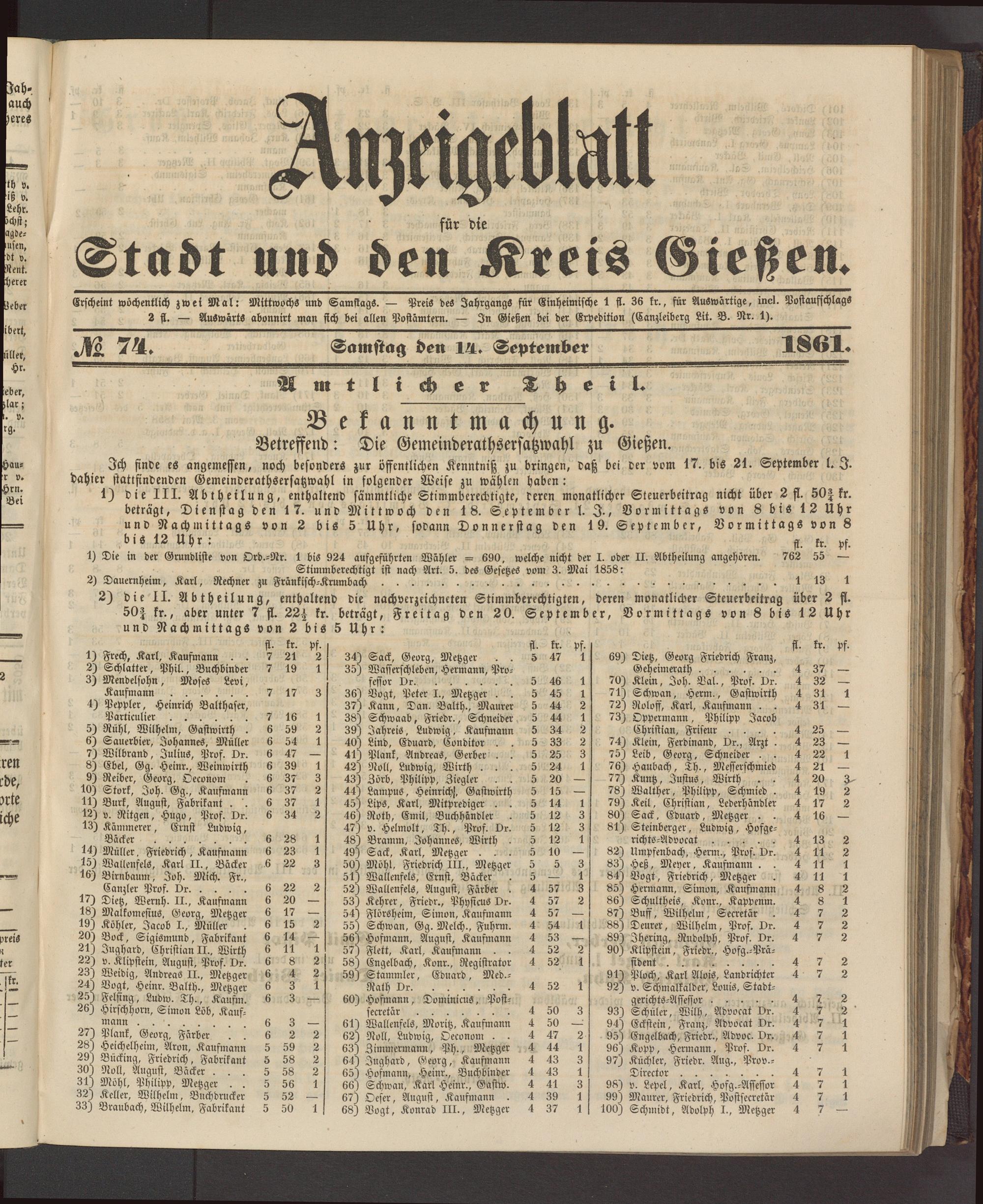 Anzeigeblatt für die Provinzialhauptstadt Gießen. 1840-1867