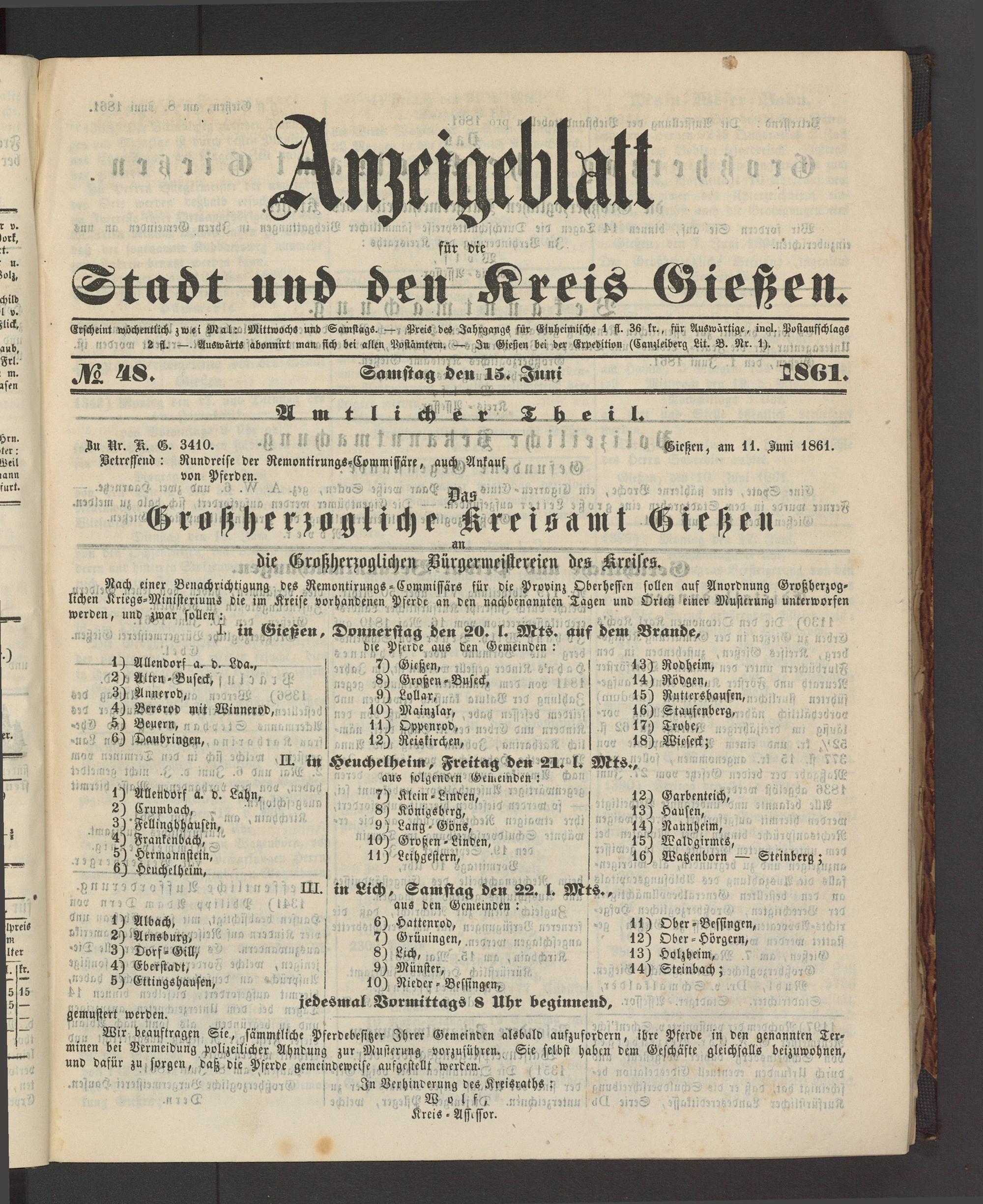 Anzeigeblatt für die Provinzialhauptstadt Gießen. 1840-1867