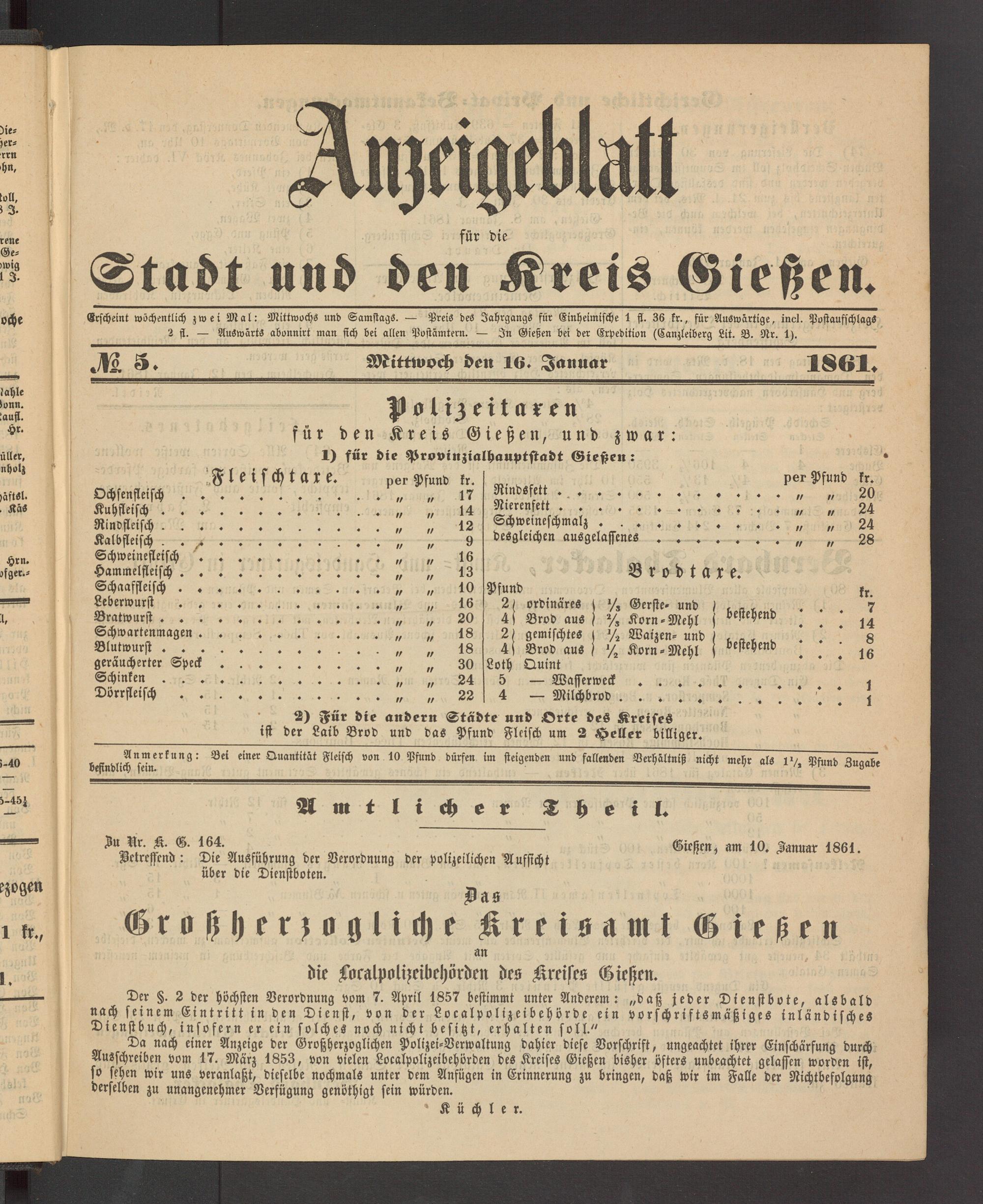 Anzeigeblatt für die Provinzialhauptstadt Gießen. 1840-1867