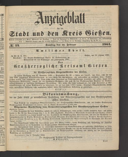 Anzeigeblatt für die Provinzialhauptstadt Gießen. 1840-1867