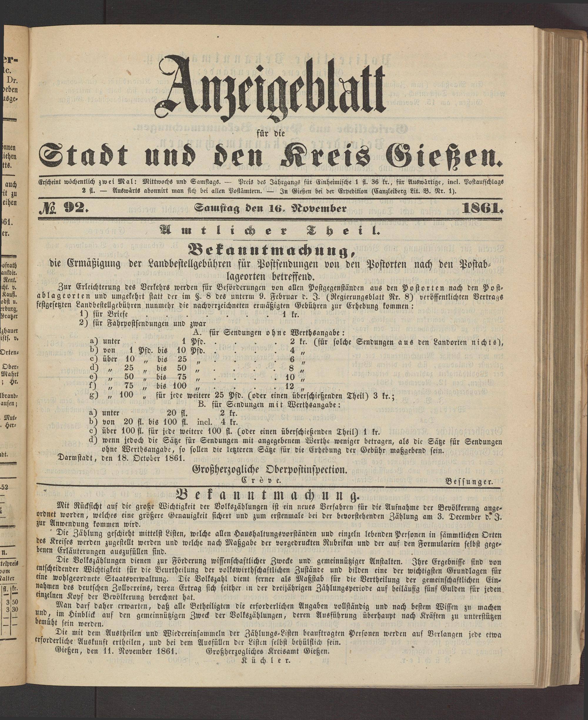 Anzeigeblatt für die Provinzialhauptstadt Gießen. 1840-1867