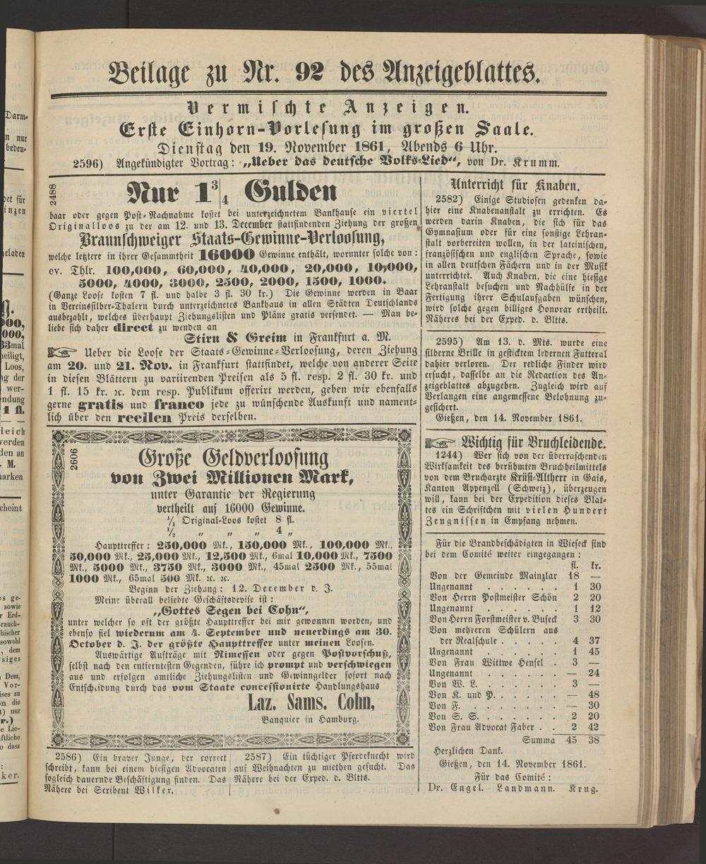 Anzeigeblatt für die Provinzialhauptstadt Gießen. 1840-1867