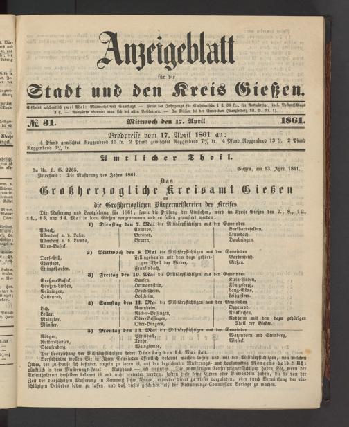 Anzeigeblatt für die Provinzialhauptstadt Gießen. 1840-1867