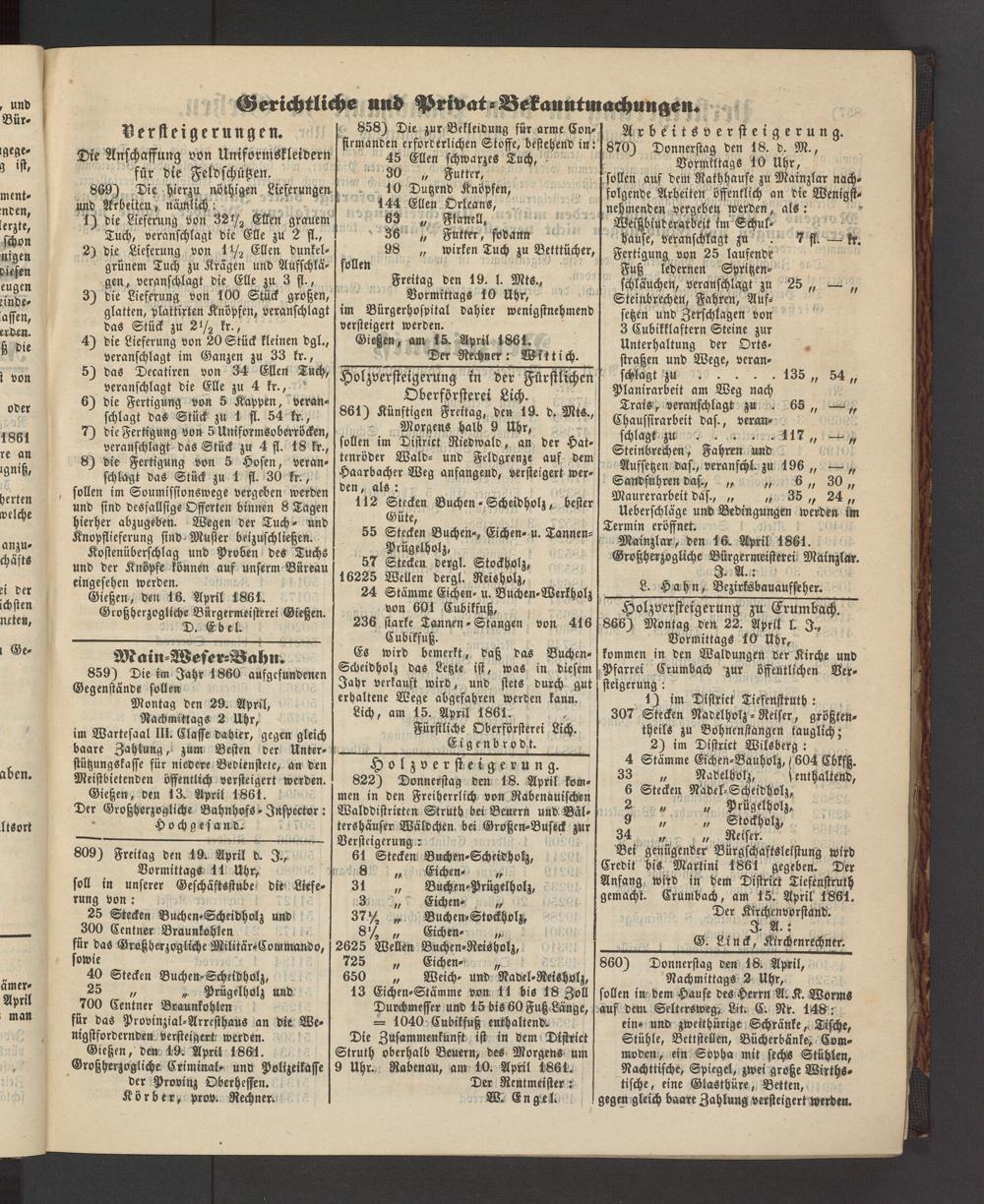 Anzeigeblatt für die Provinzialhauptstadt Gießen. 1840-1867