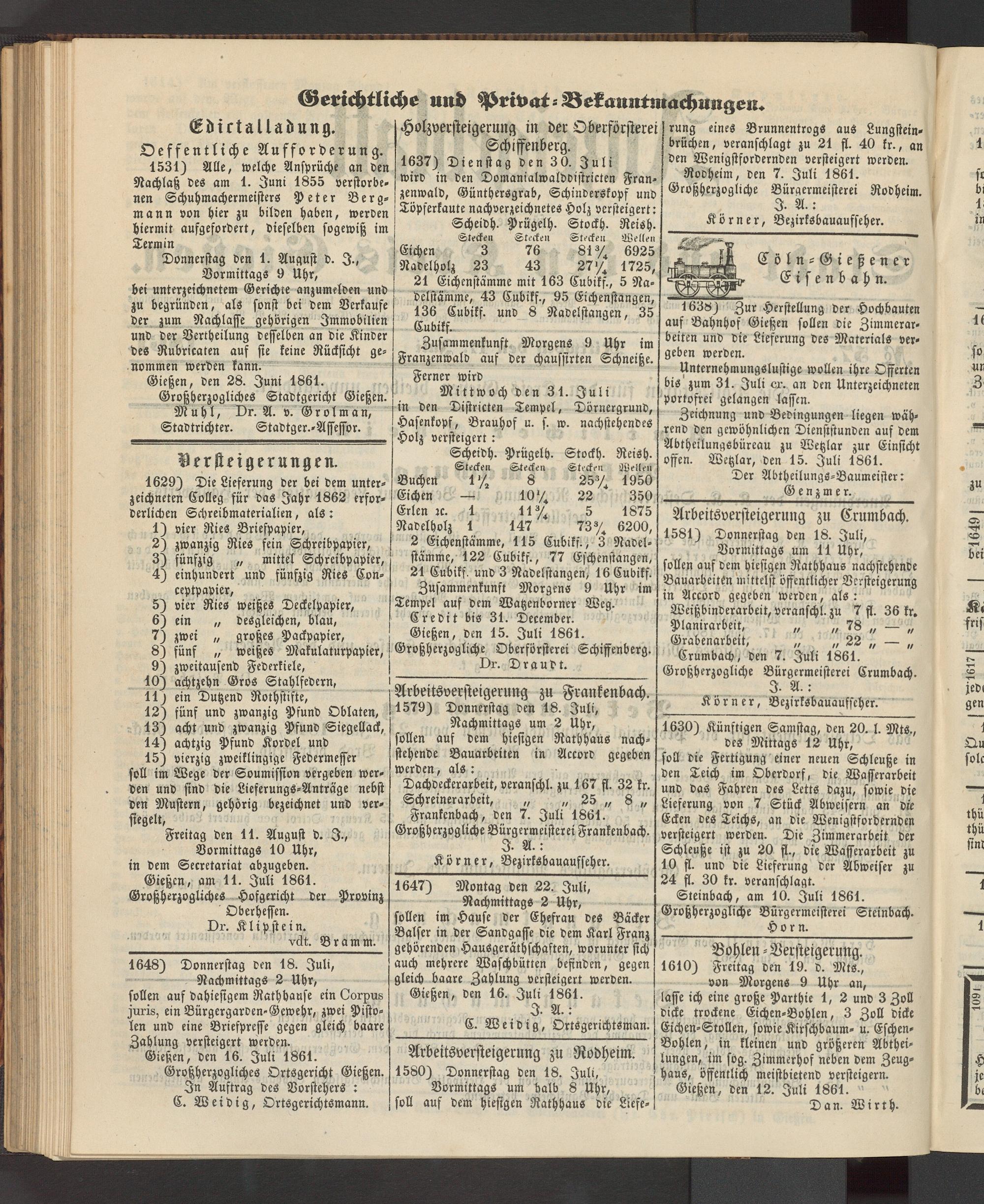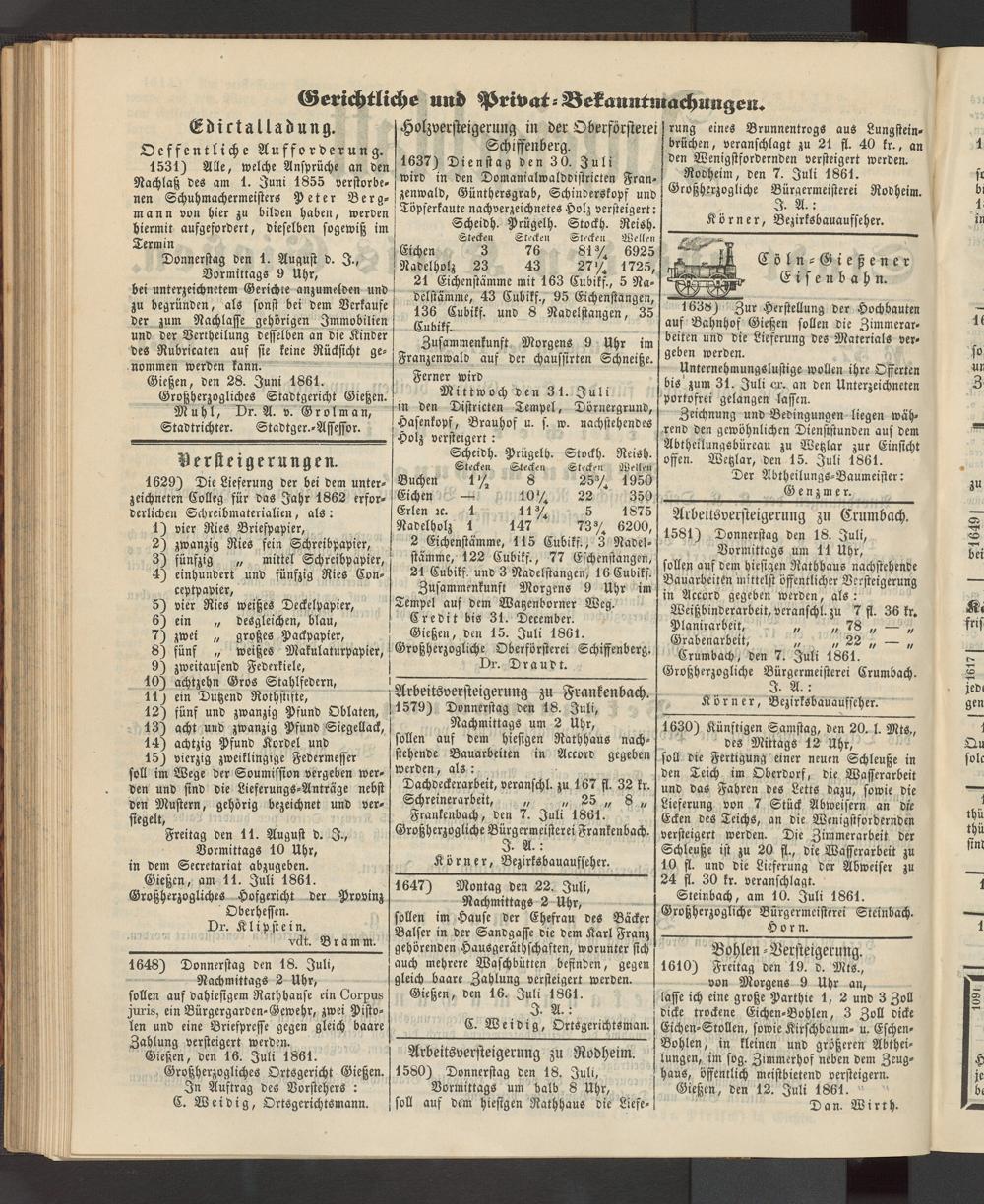 Anzeigeblatt für die Provinzialhauptstadt Gießen. 1840-1867