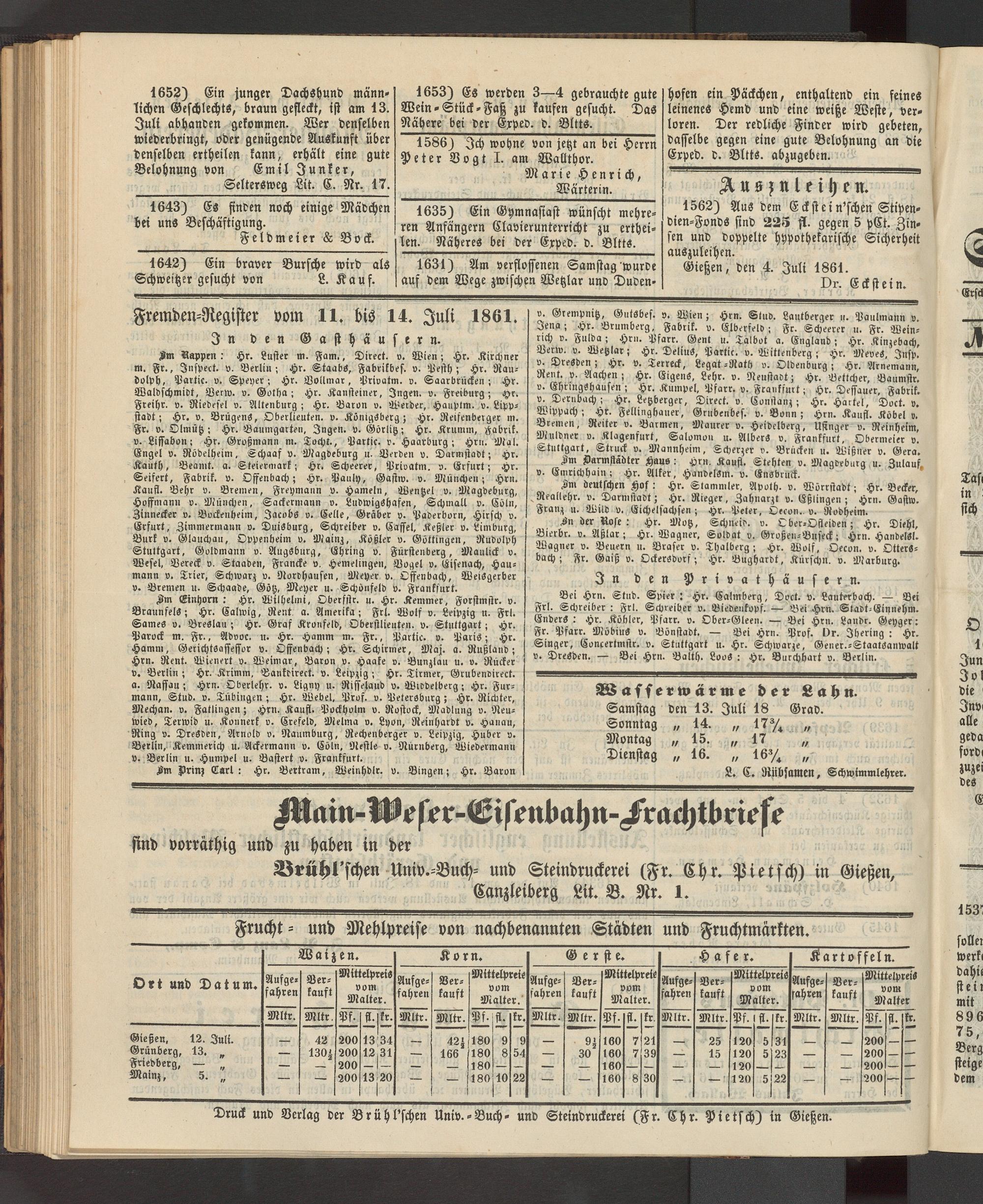 Anzeigeblatt für die Provinzialhauptstadt Gießen. 1840-1867