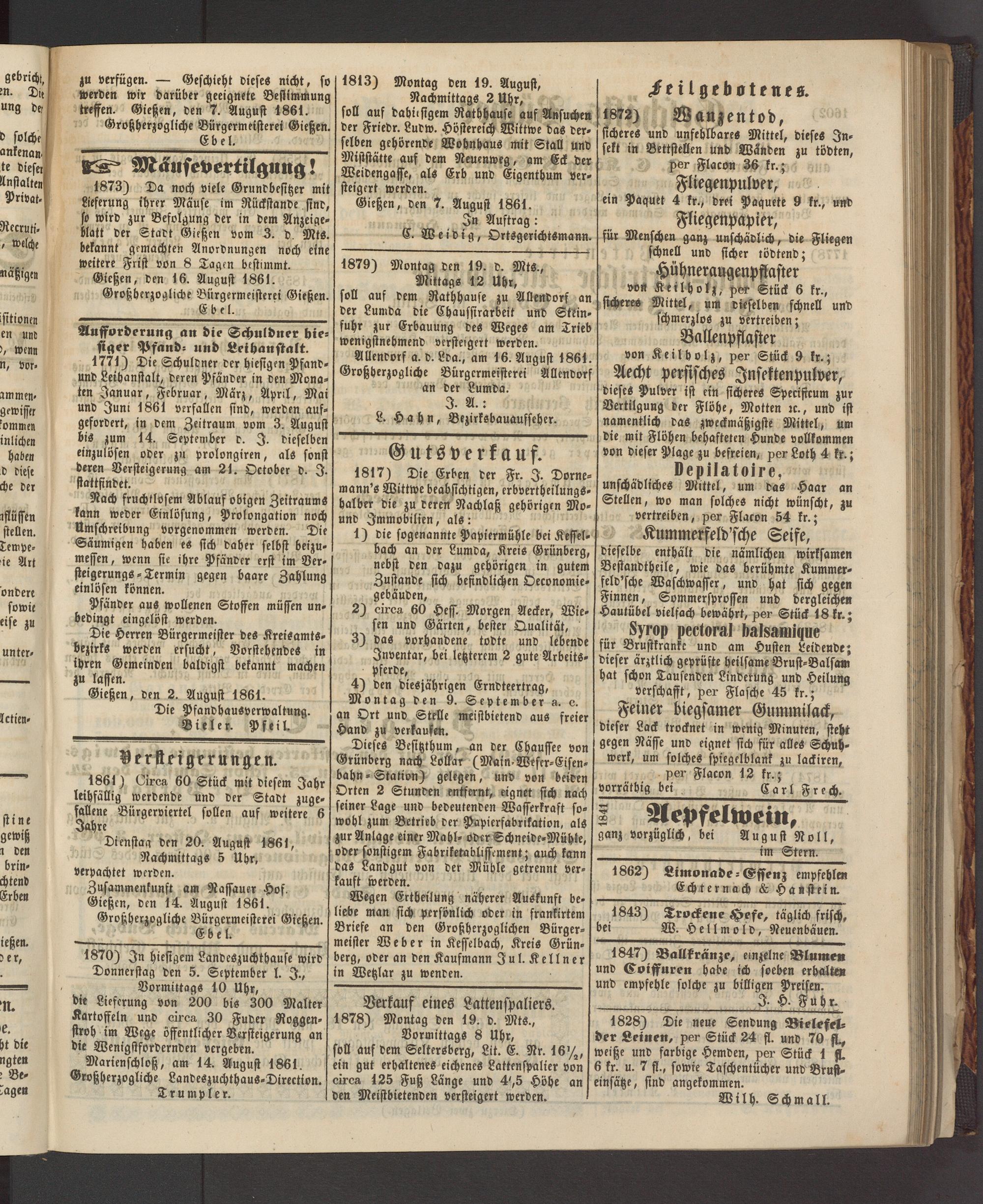 Anzeigeblatt für die Provinzialhauptstadt Gießen. 1840-1867