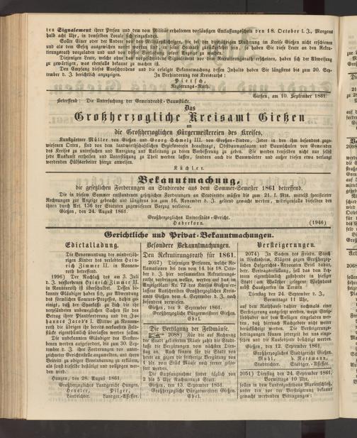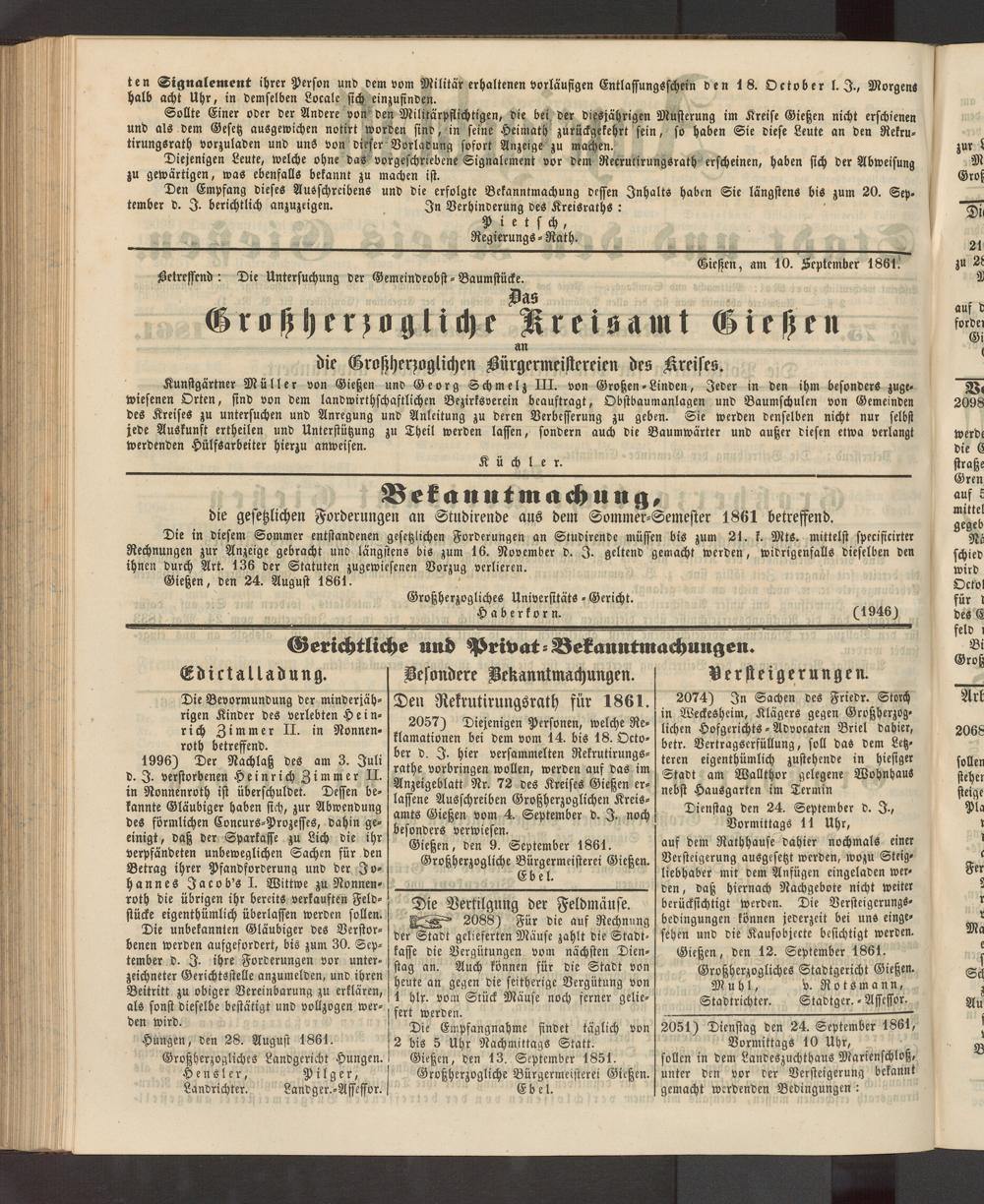 Anzeigeblatt für die Provinzialhauptstadt Gießen. 1840-1867