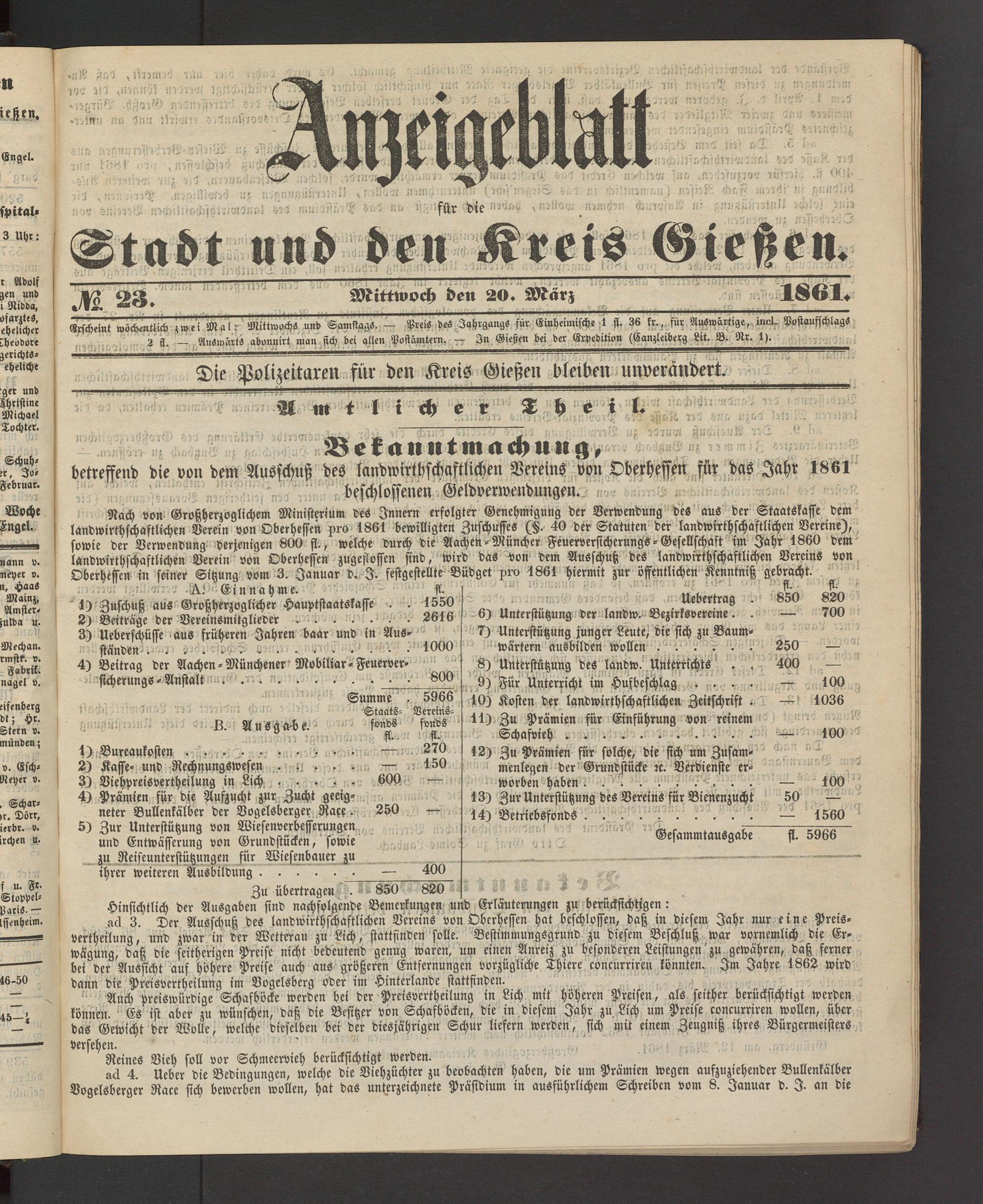 Anzeigeblatt für die Provinzialhauptstadt Gießen. 1840-1867